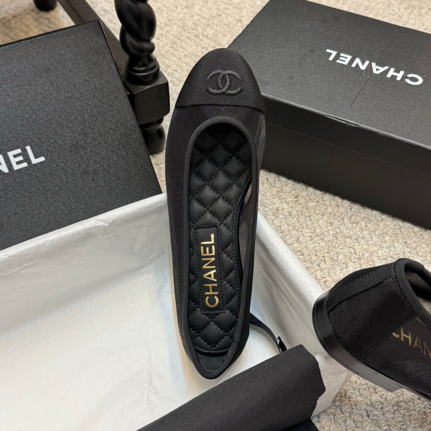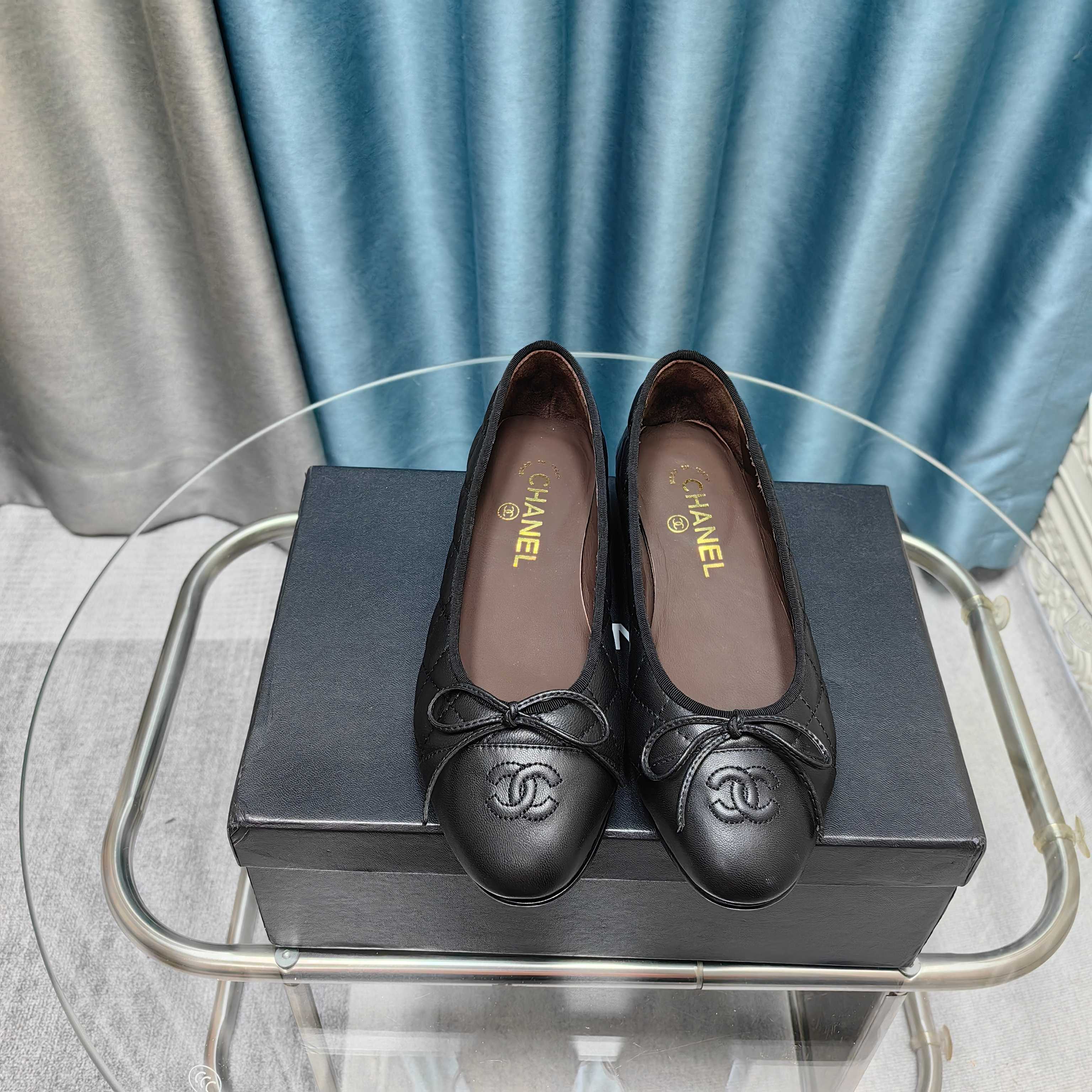 CC 25 Cambon Ballet Flat Black Quilted Calfskin