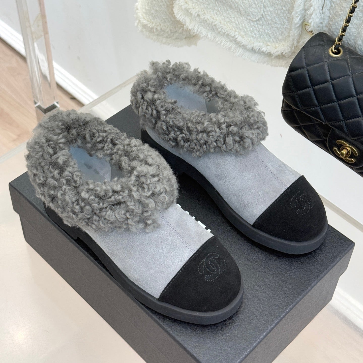 CC 25s Furry Snow Boots Beige Black Suede Wool 512063