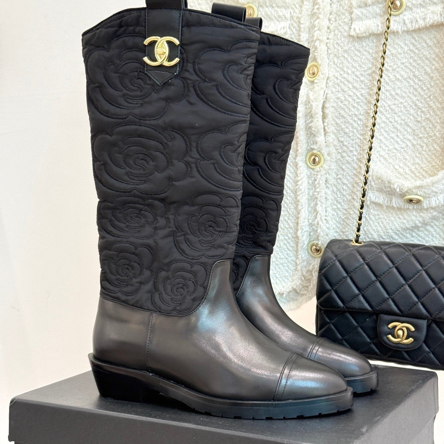 CC 25 Long Boot Black Denim Fabric Calfskin 515272