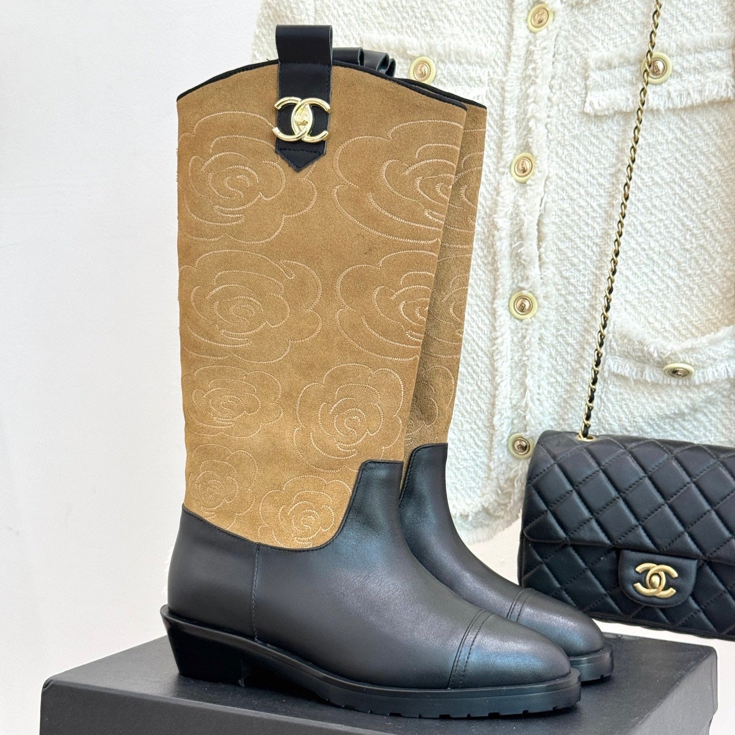 CC 25 Long Boot Navy Blue Black Denim Fabric Calfskin 515273
