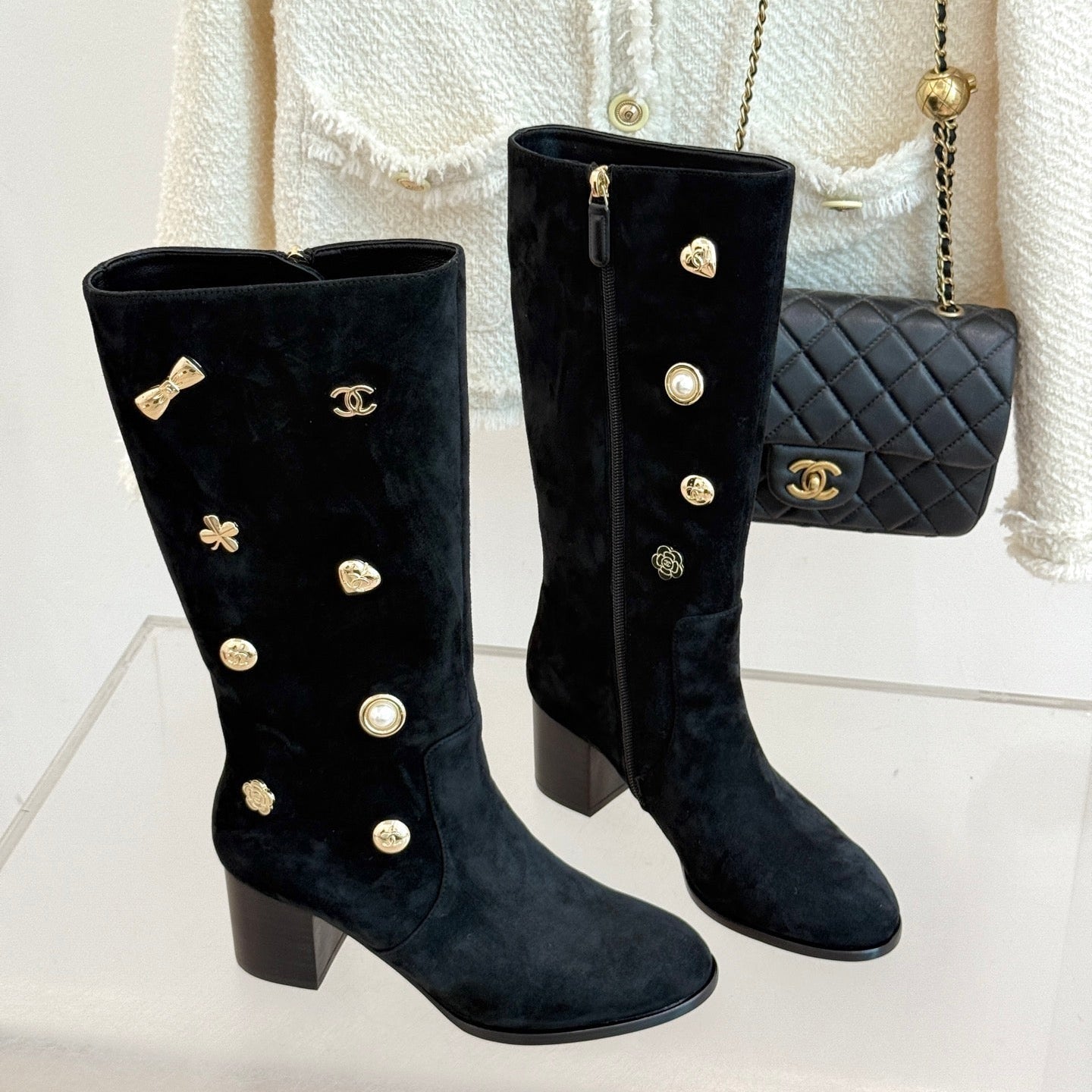 CC 25 Pearl Heel Boot Black Calfskin 516653