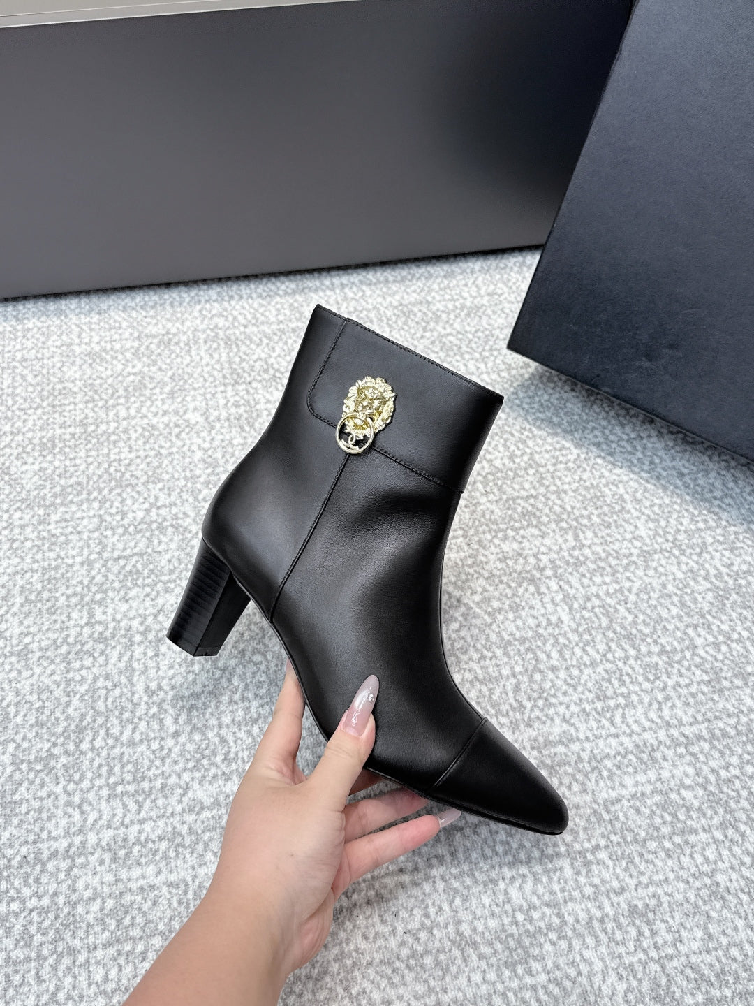 CC 2025s Lion Pointed Toe Ankle Boots 50mm Black Sheepskin 461623