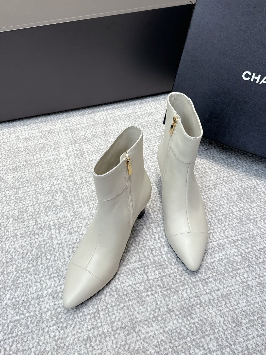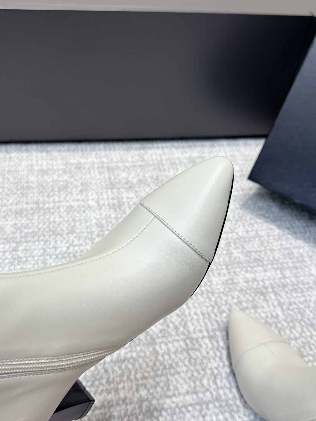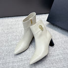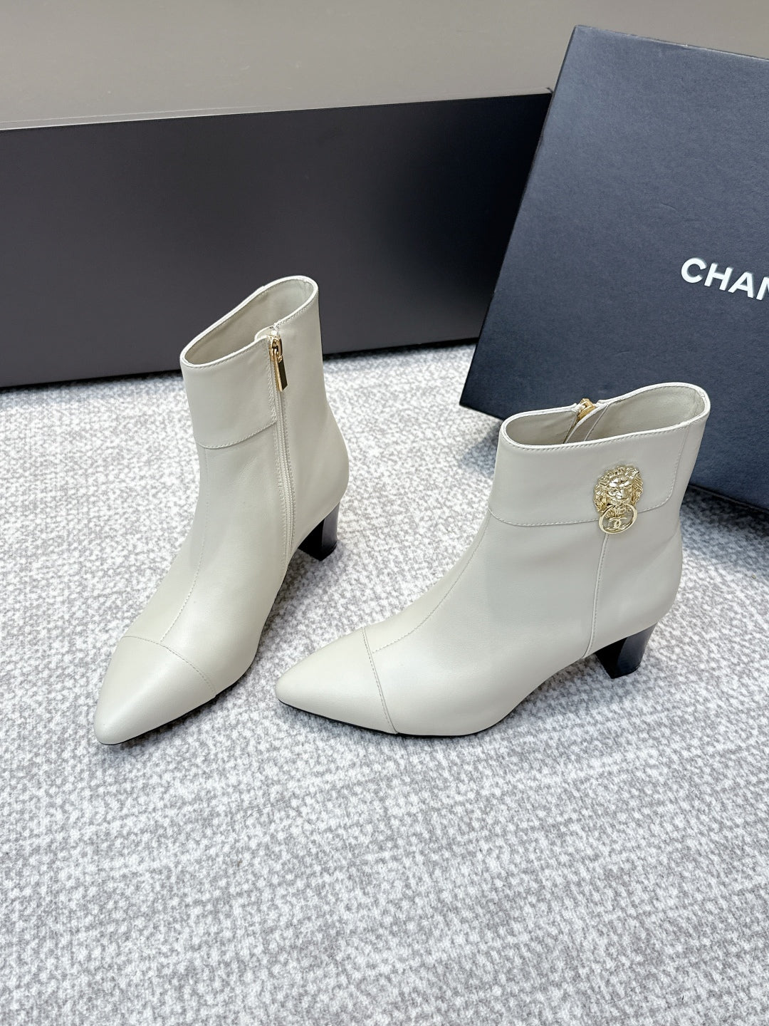 CC 2025s Lion Pointed Toe Ankle Boots 50mm White Sheepskin 461624