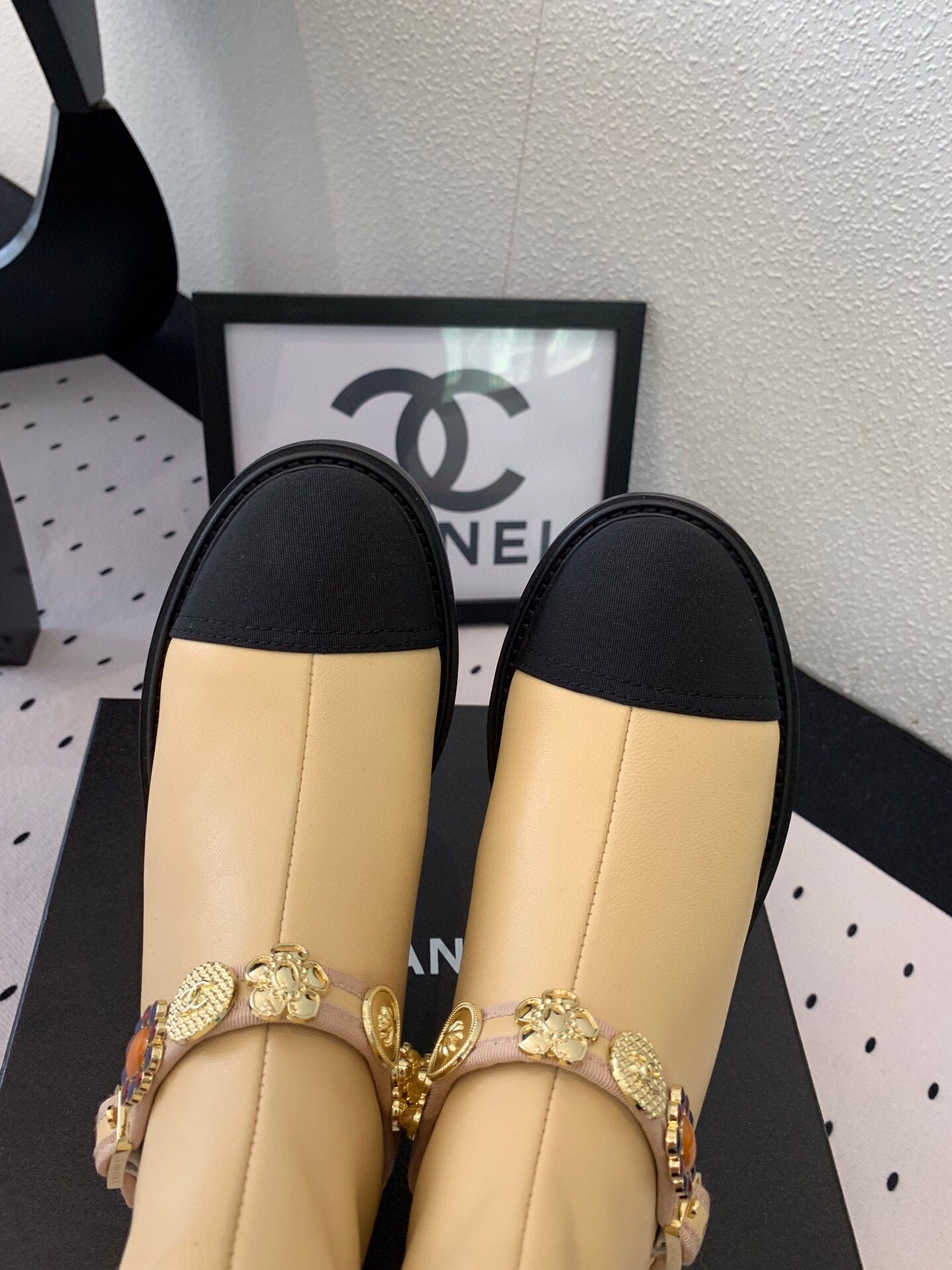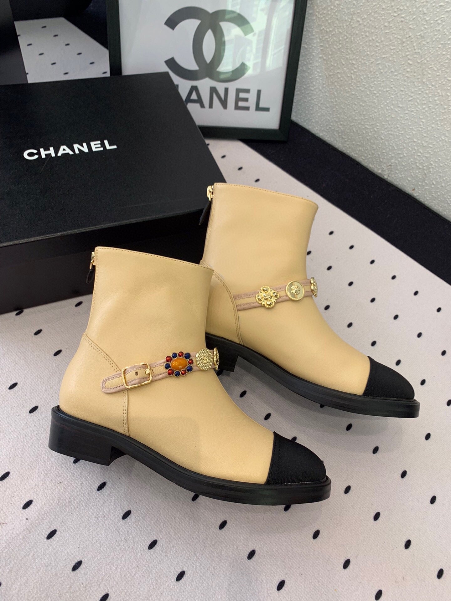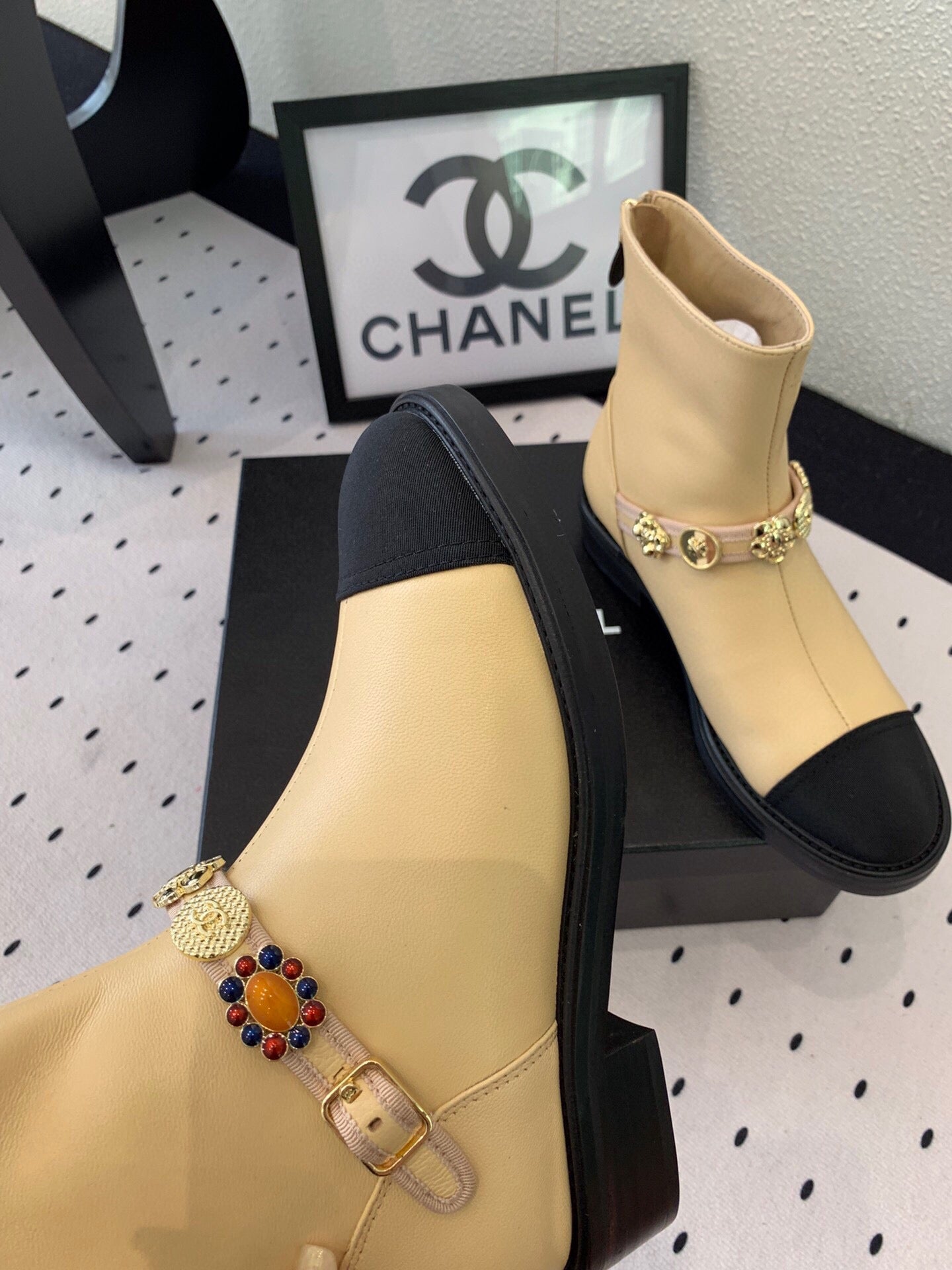 CC 24 Mold GHW Classic Ankle Boots 30mm Black Beige Sheepskin 432513