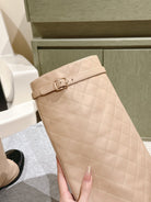 CC 24ss Fold-Over High Boots 40mm Beige Quilted Sheepskin 447475