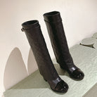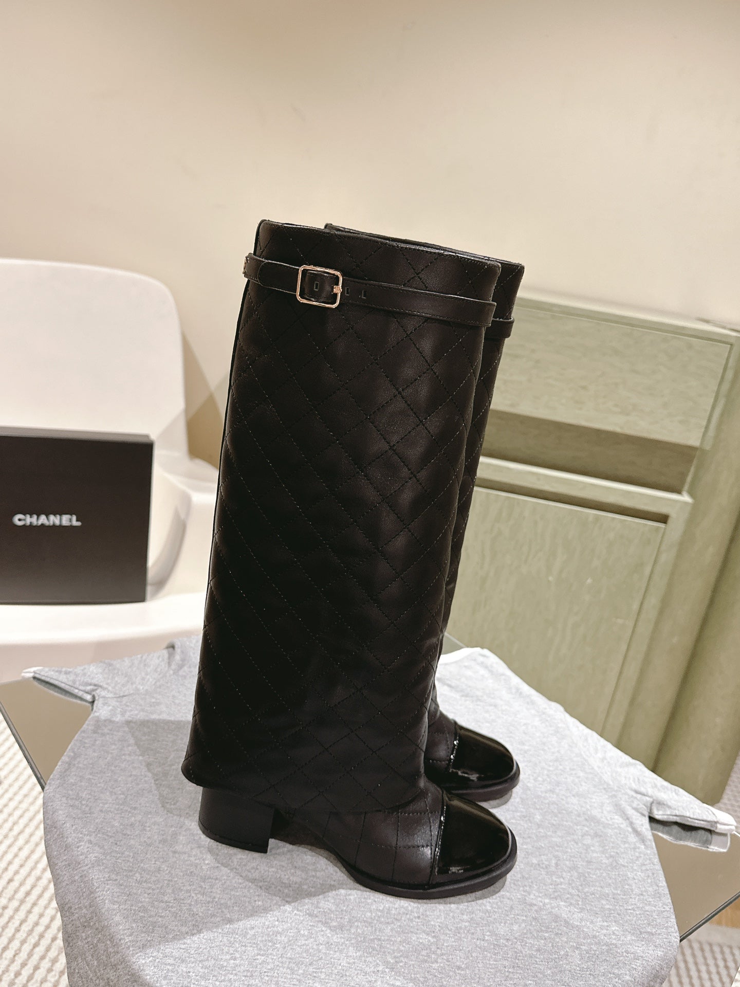 CC 24ss Fold-Over High Boots 40mm Black Quilted Sheepskin 447476