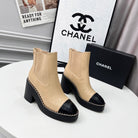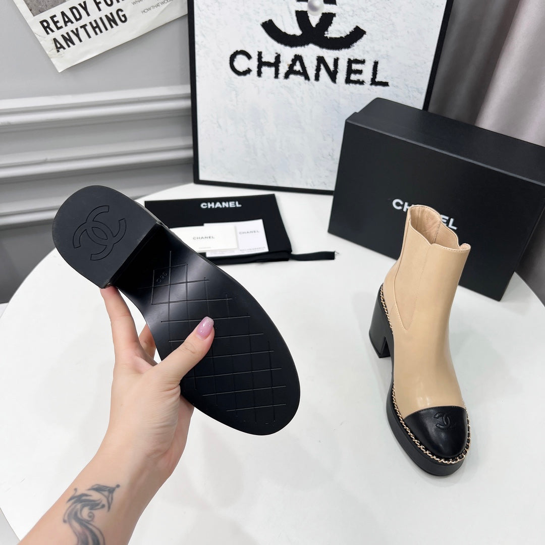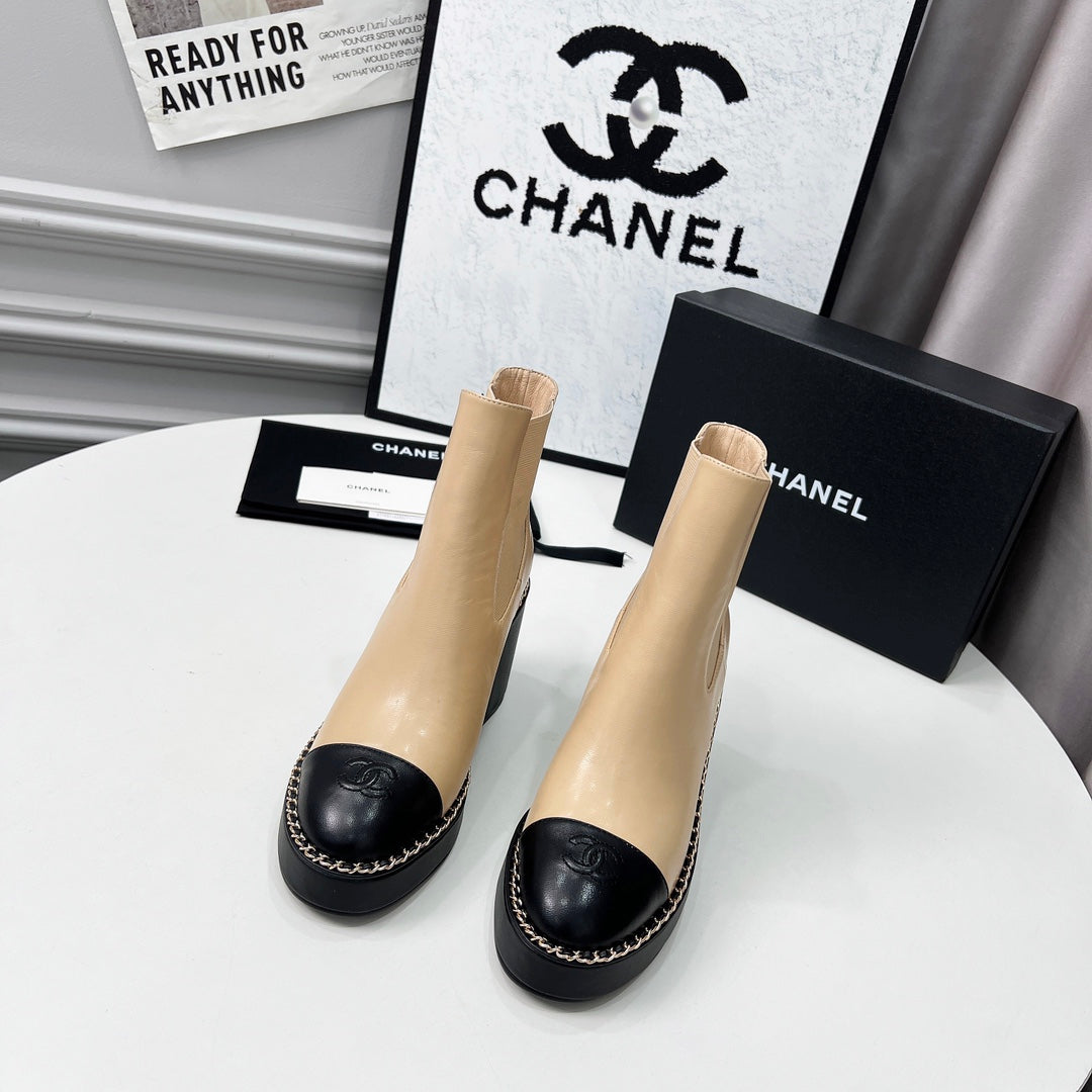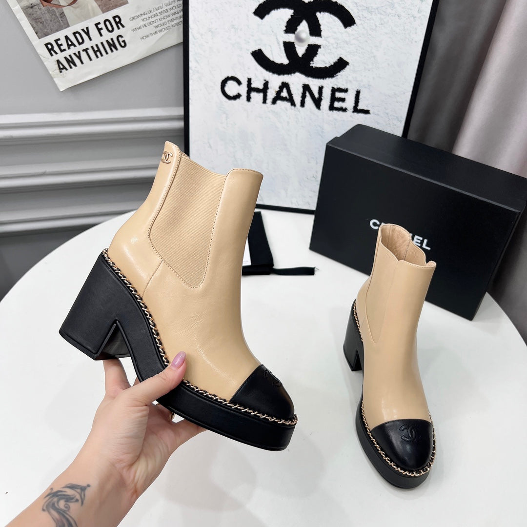 CC 25 Chelsea Ankle Boots With Chain 85mm Beige Black Sheepskin 374034