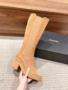 CC 25 Chelsea High Boots With Chain 85mm Beige Suede 428214