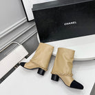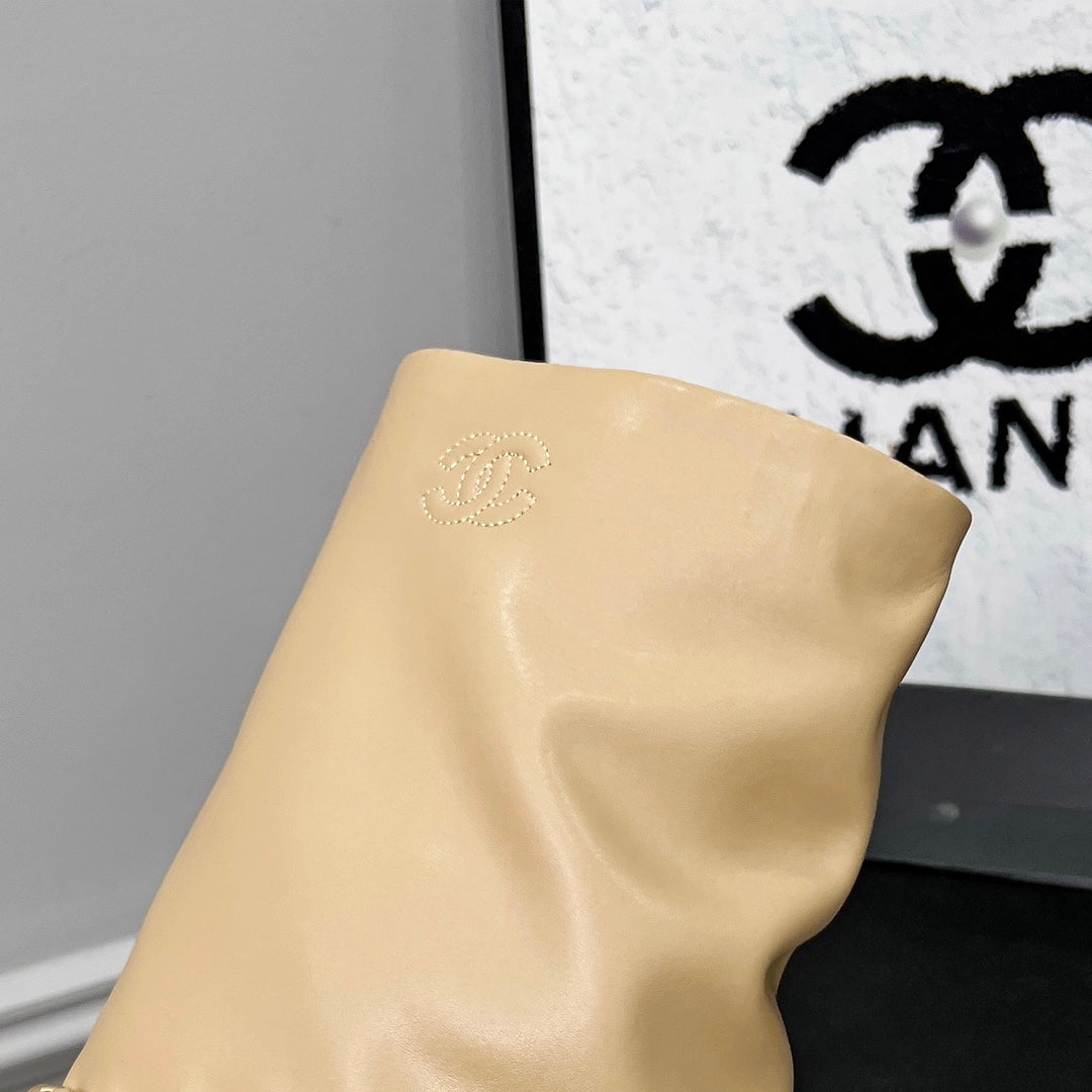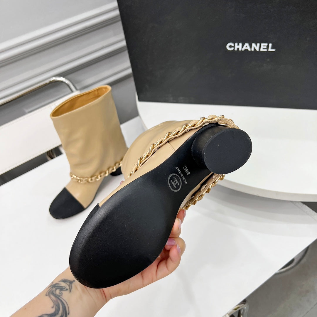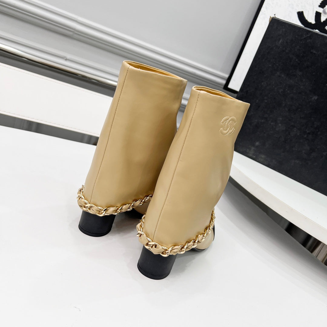 CC 25 Short Boots With Chain 55mm Beige Cowhide Black Grosgrain 374027