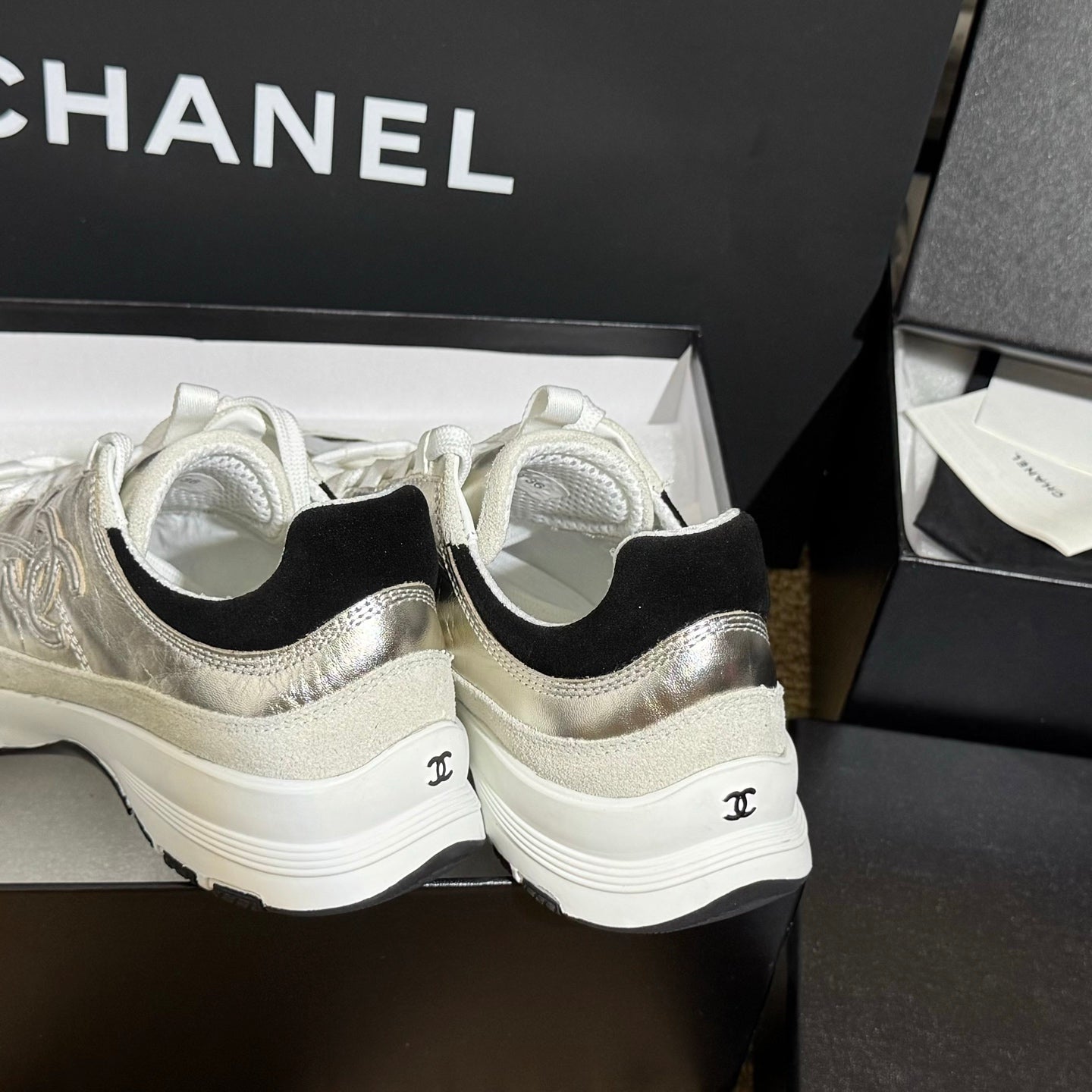 CC 25A Trainers Light Gold Black Cream Laminated Calfskin And Suede Calfskin 352120