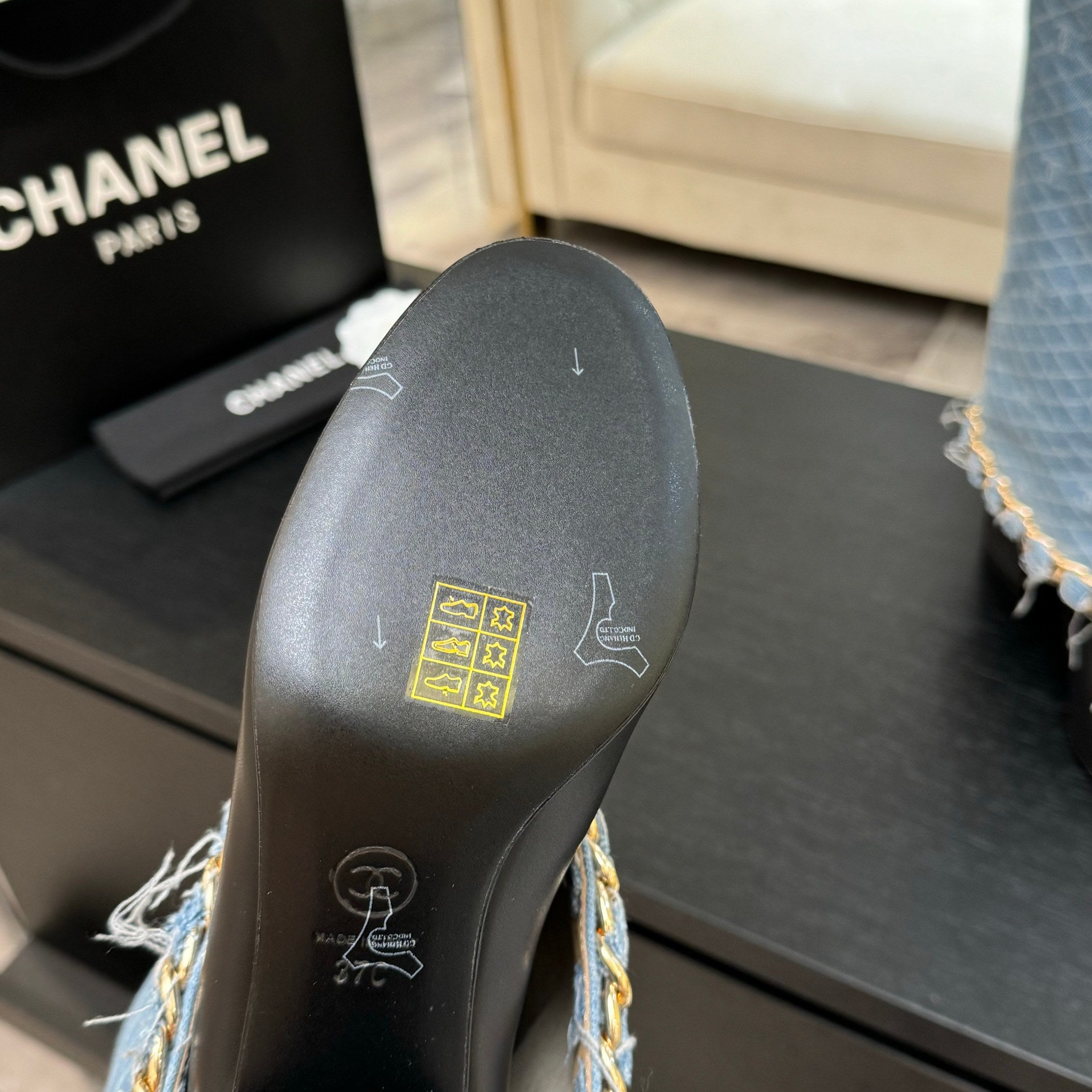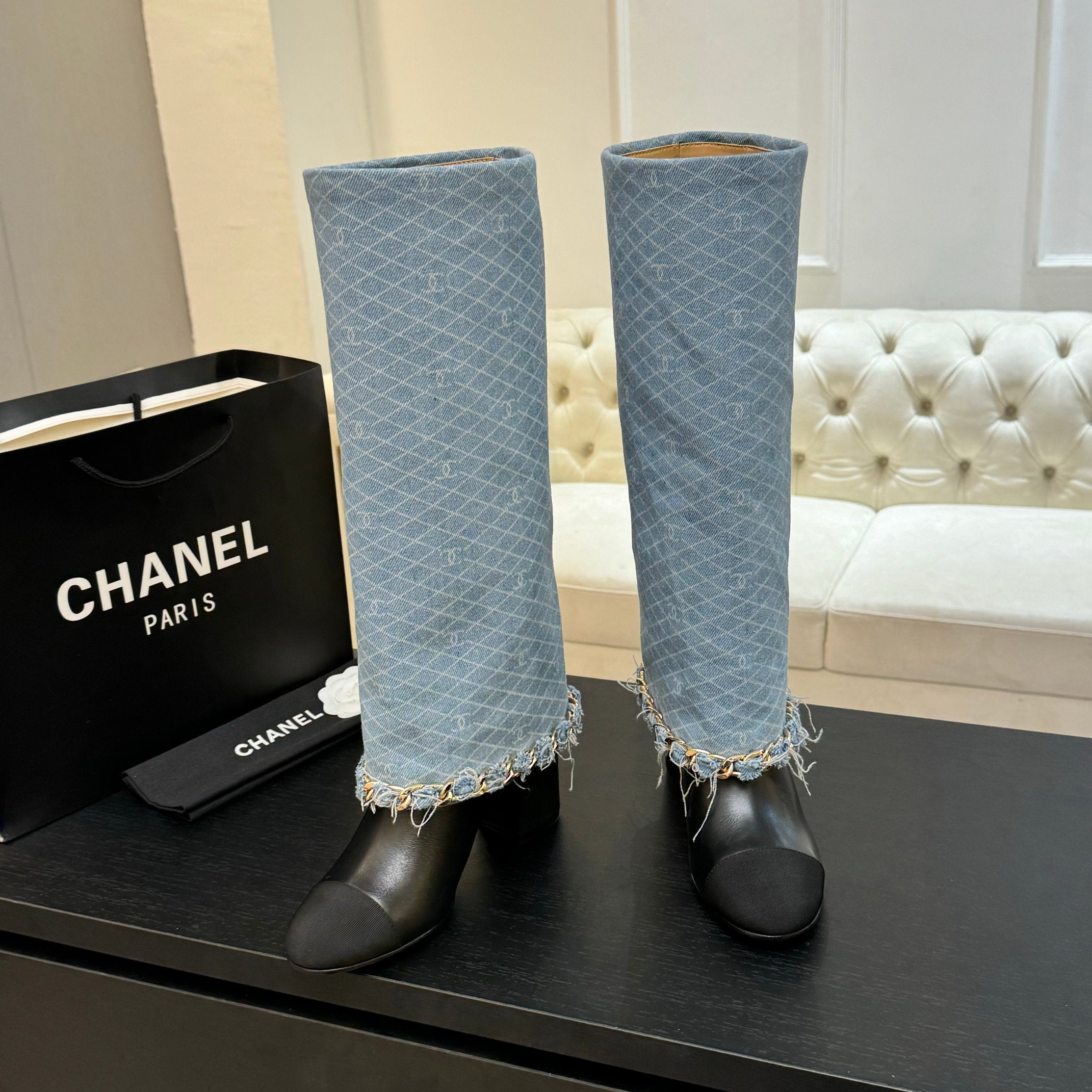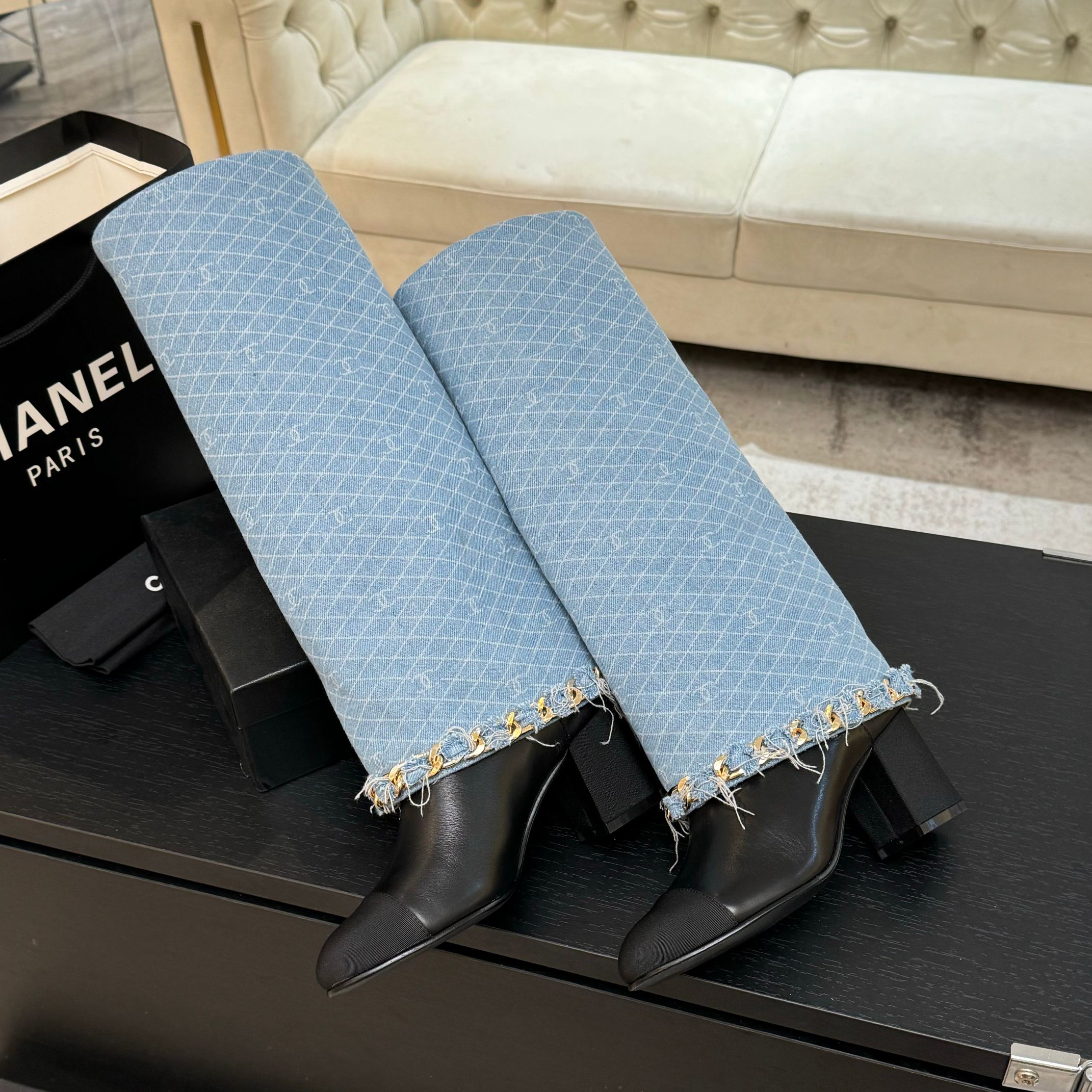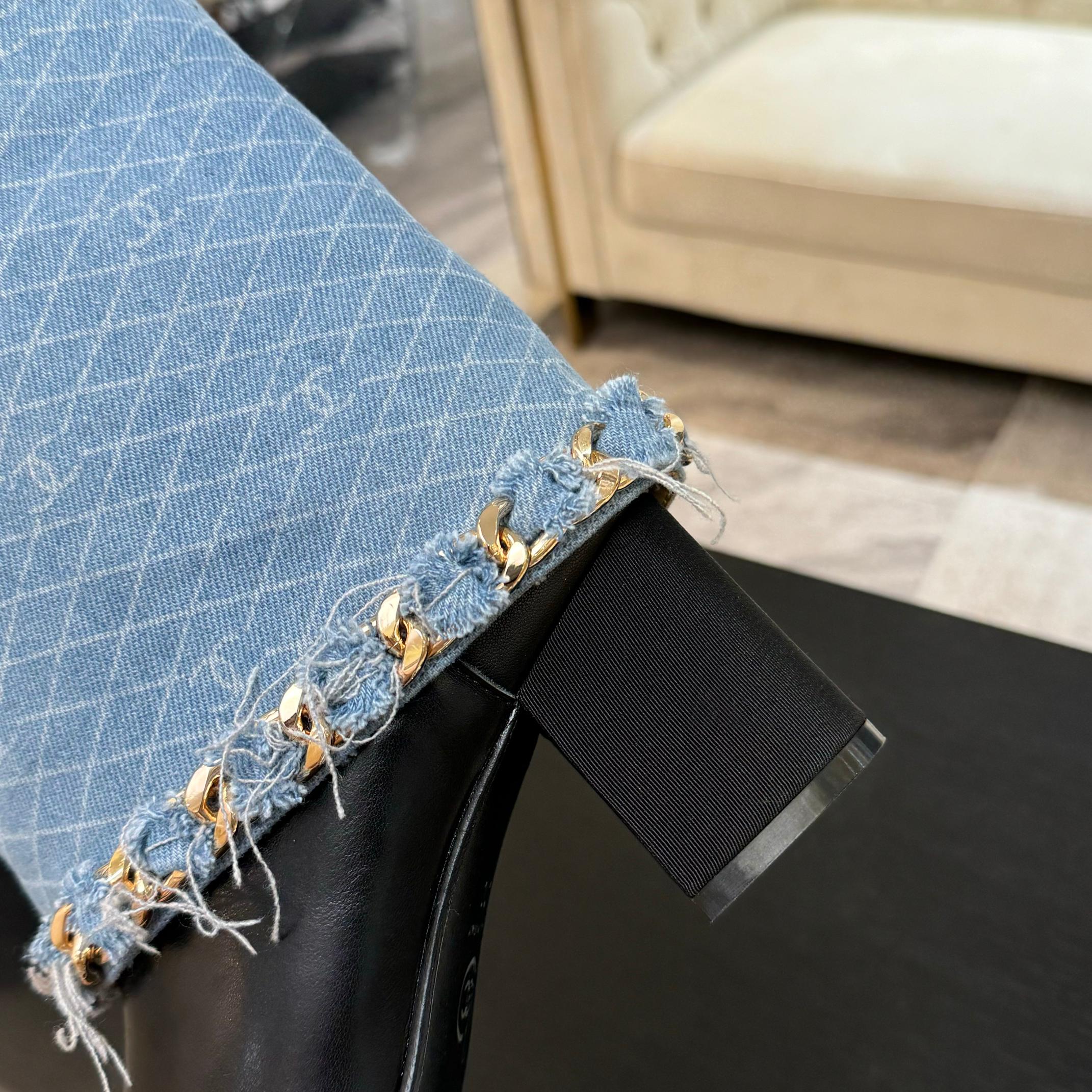 CC 25B High Boots Light Blue Denim With Chain Black Grosgrain 373808