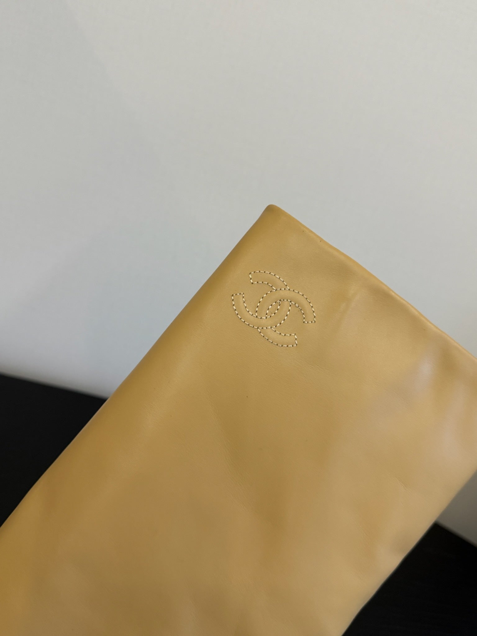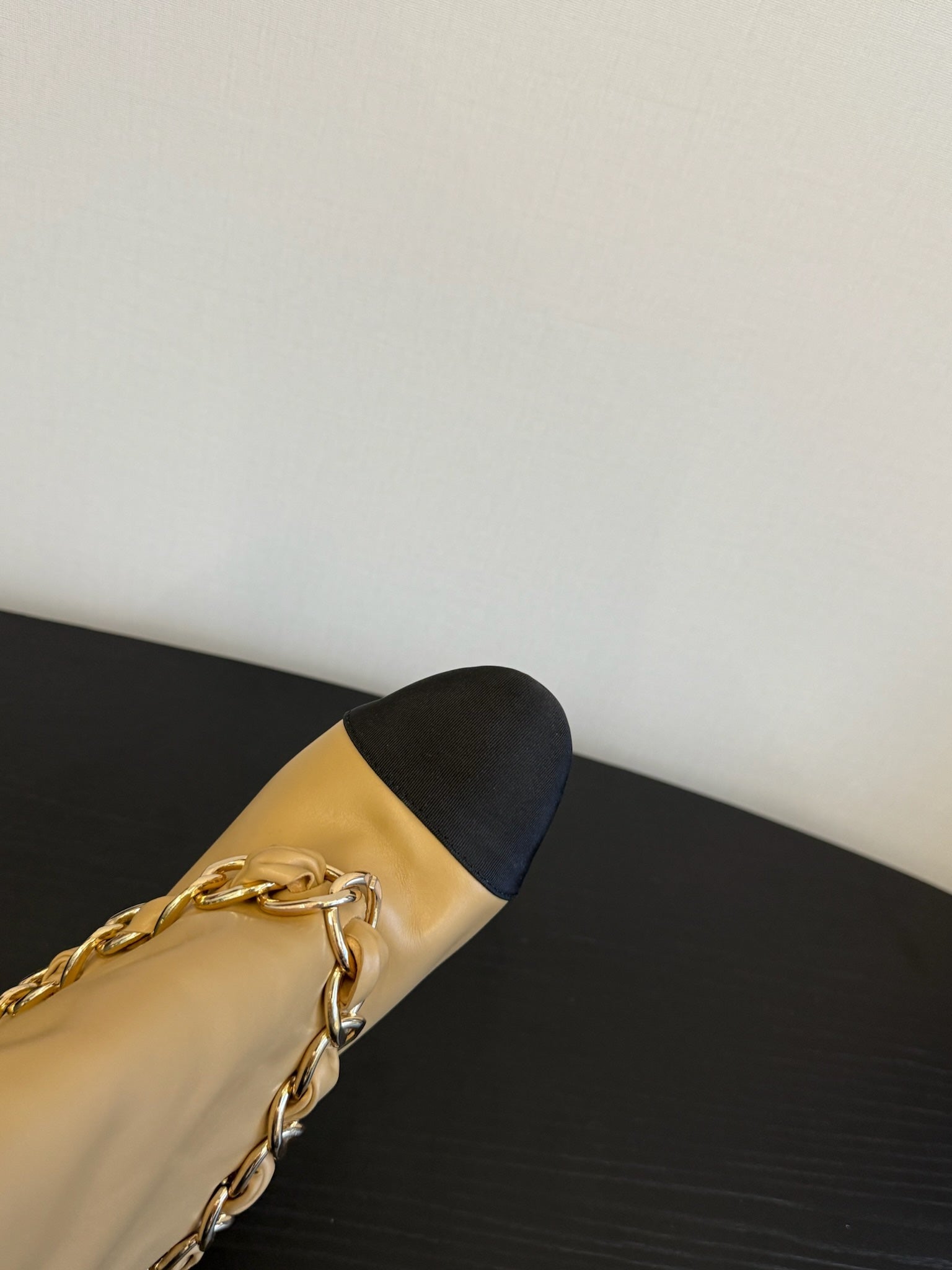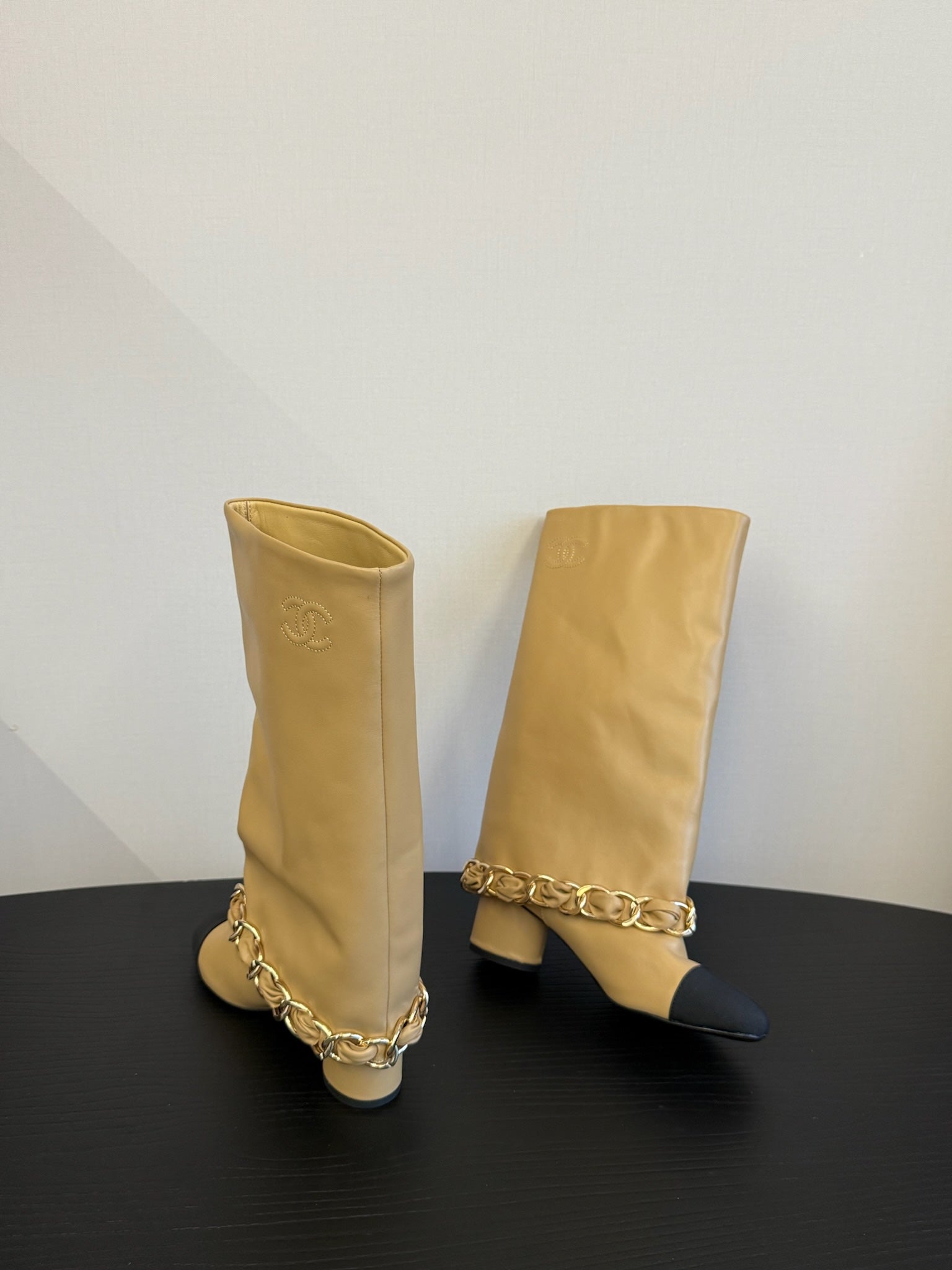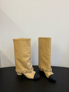 CC 25S High Boots With Chain Beige Black Cowhide & Sheepskin 417847