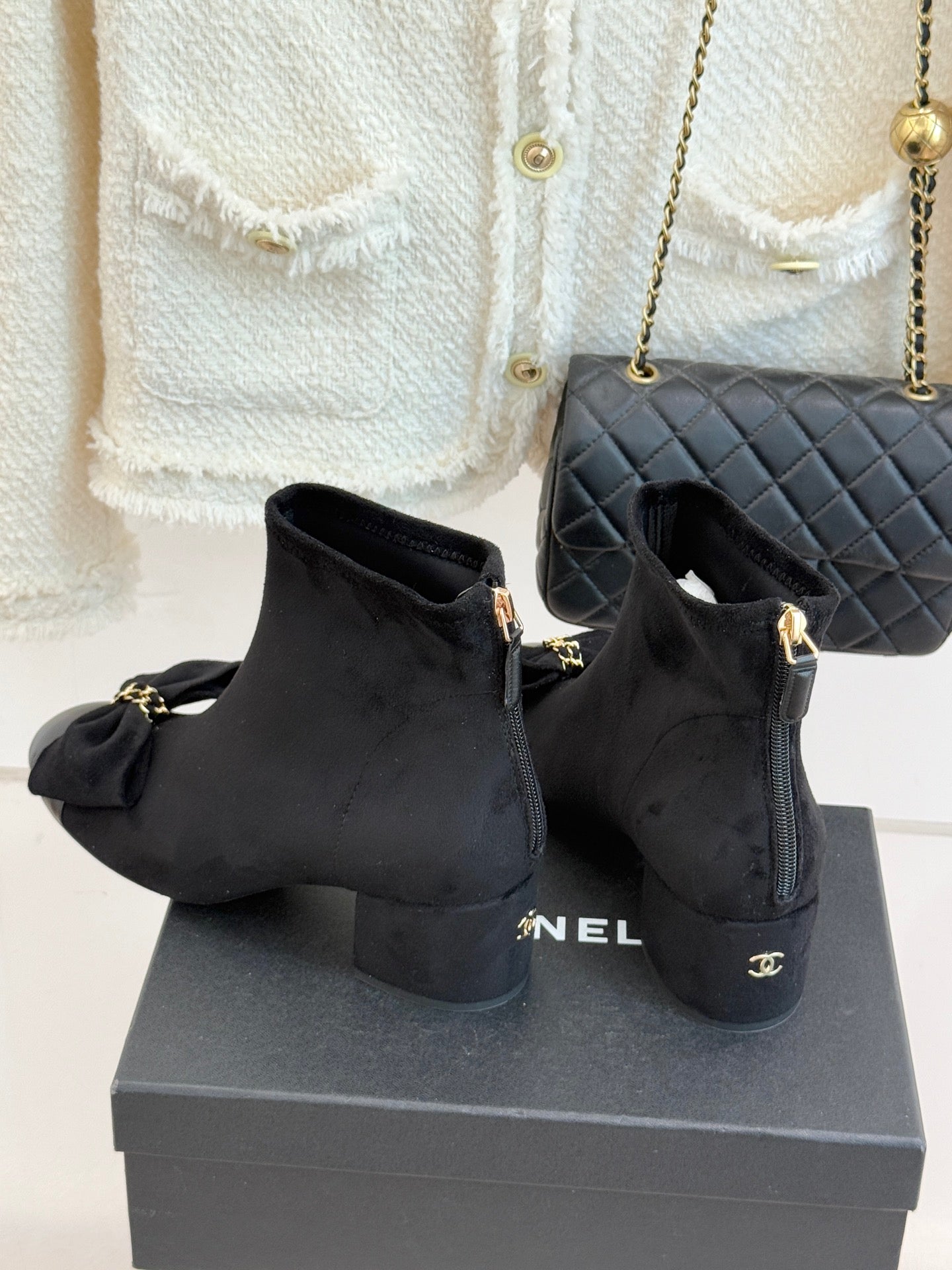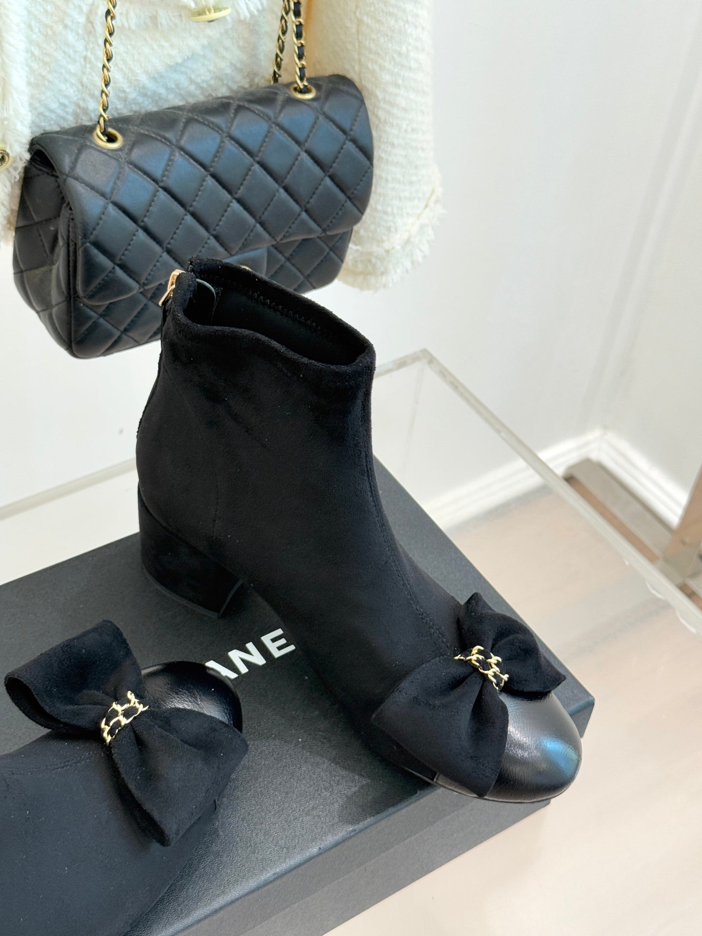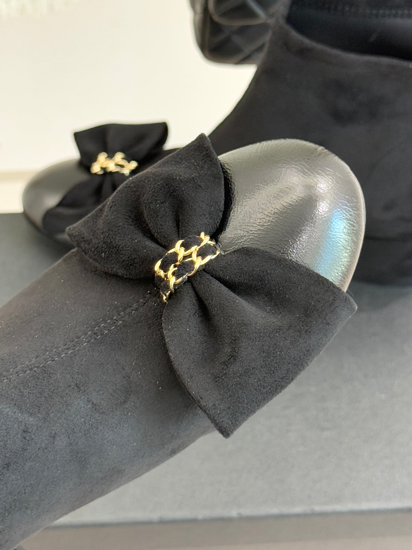 CC 25K Bow Chain Chunky Stretch Boots Black Suede 512072