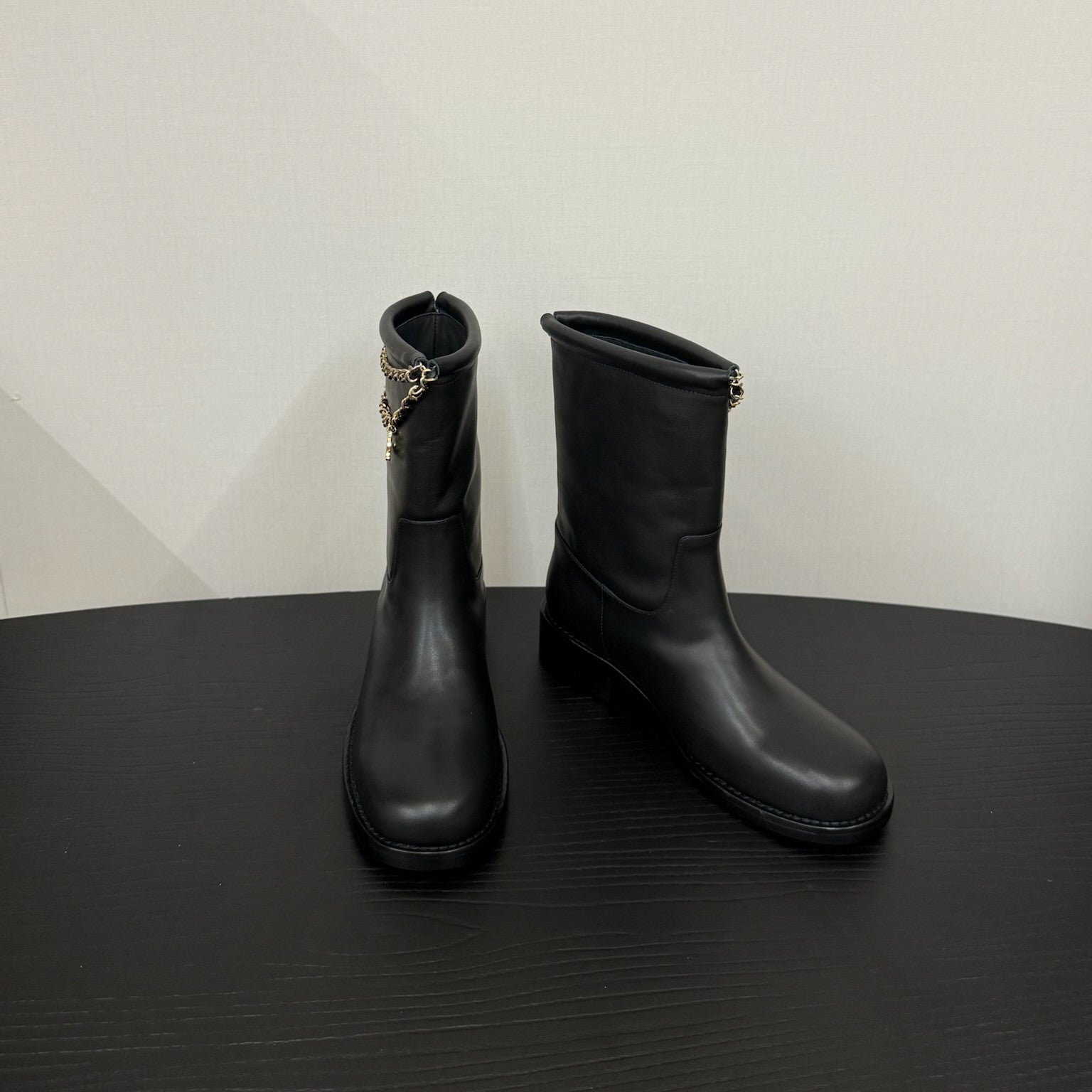CC 25s Short Flat Chain Knight Boots Black Leather 417841
