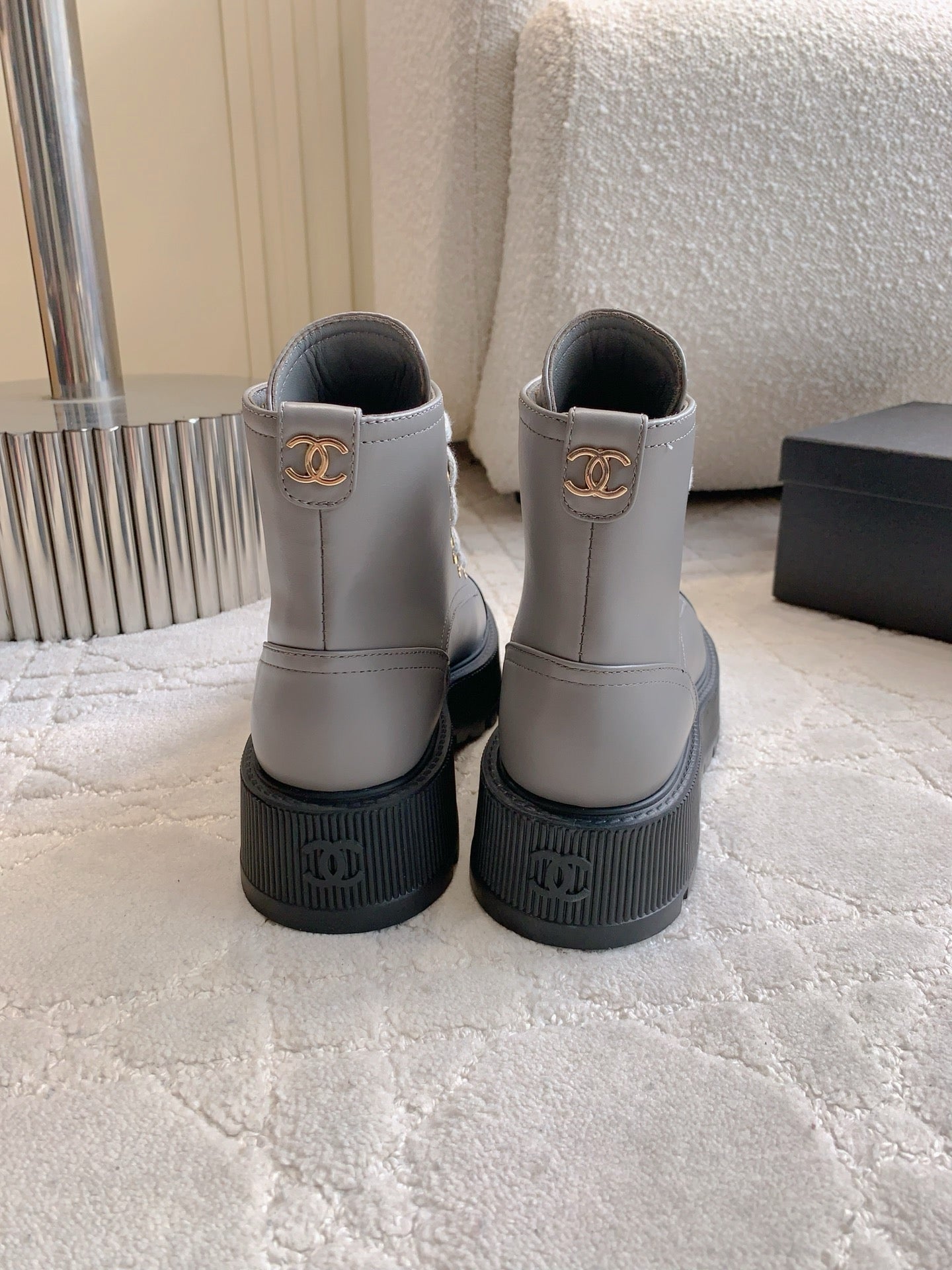 CC 24 Combat Boots 50mm Grey Black Calfskin & Sheepskin 404288