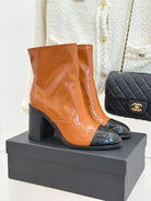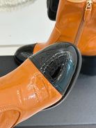 CC Classic Short Boots Block Heel 90mm Burnt Orange Patent Leather 465390