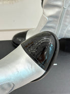 CC Classic Short Boots Block Heel 90mm Sliver Metalic Calfskin 465389