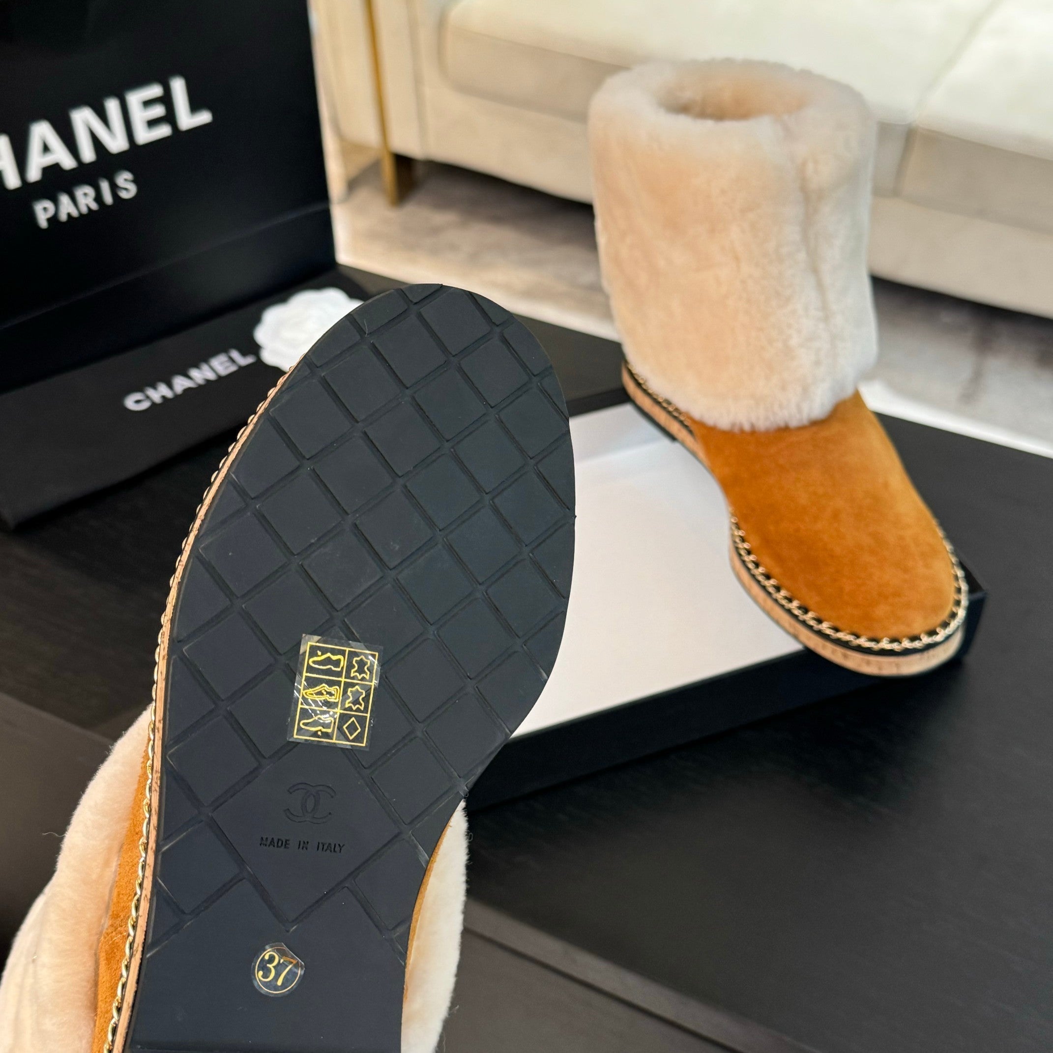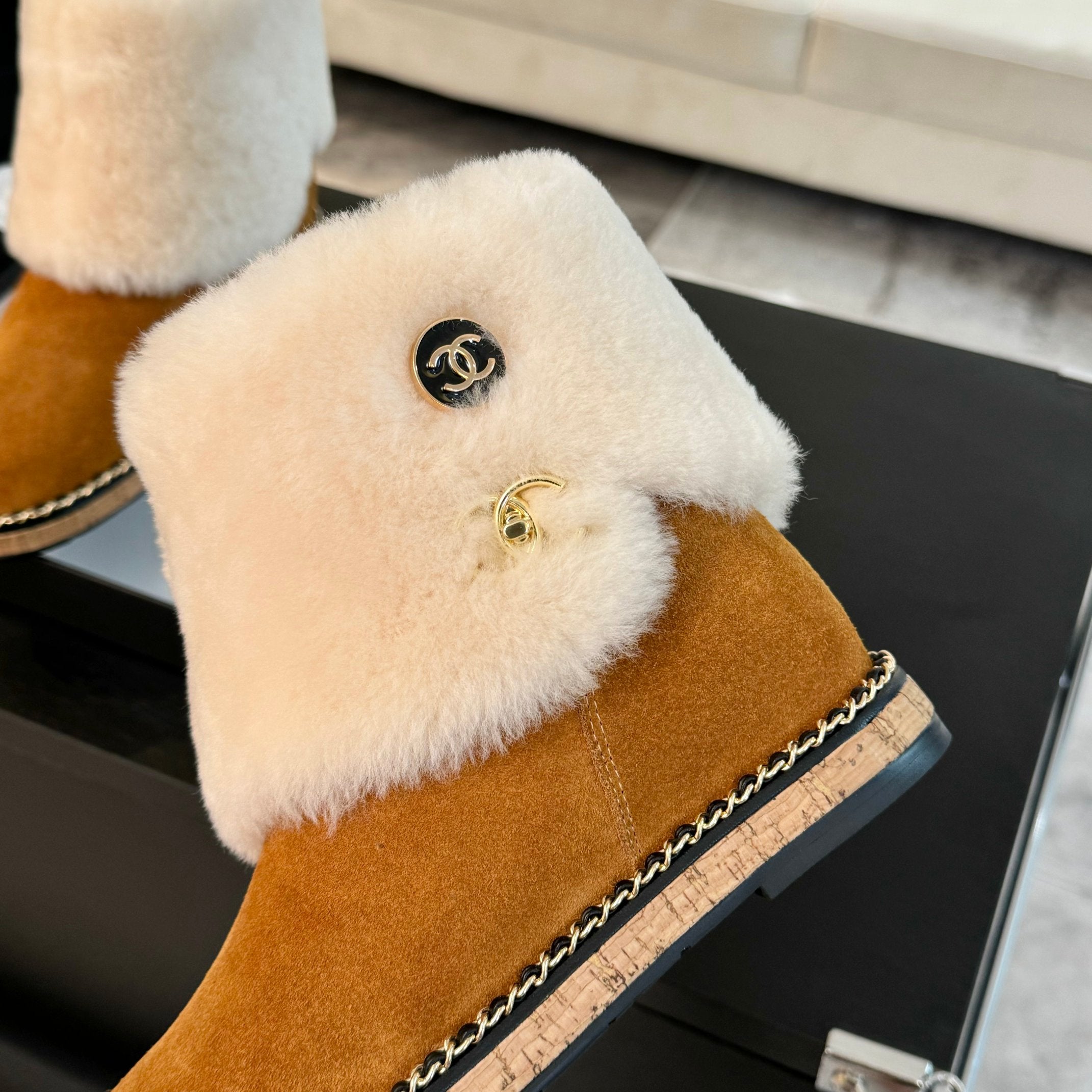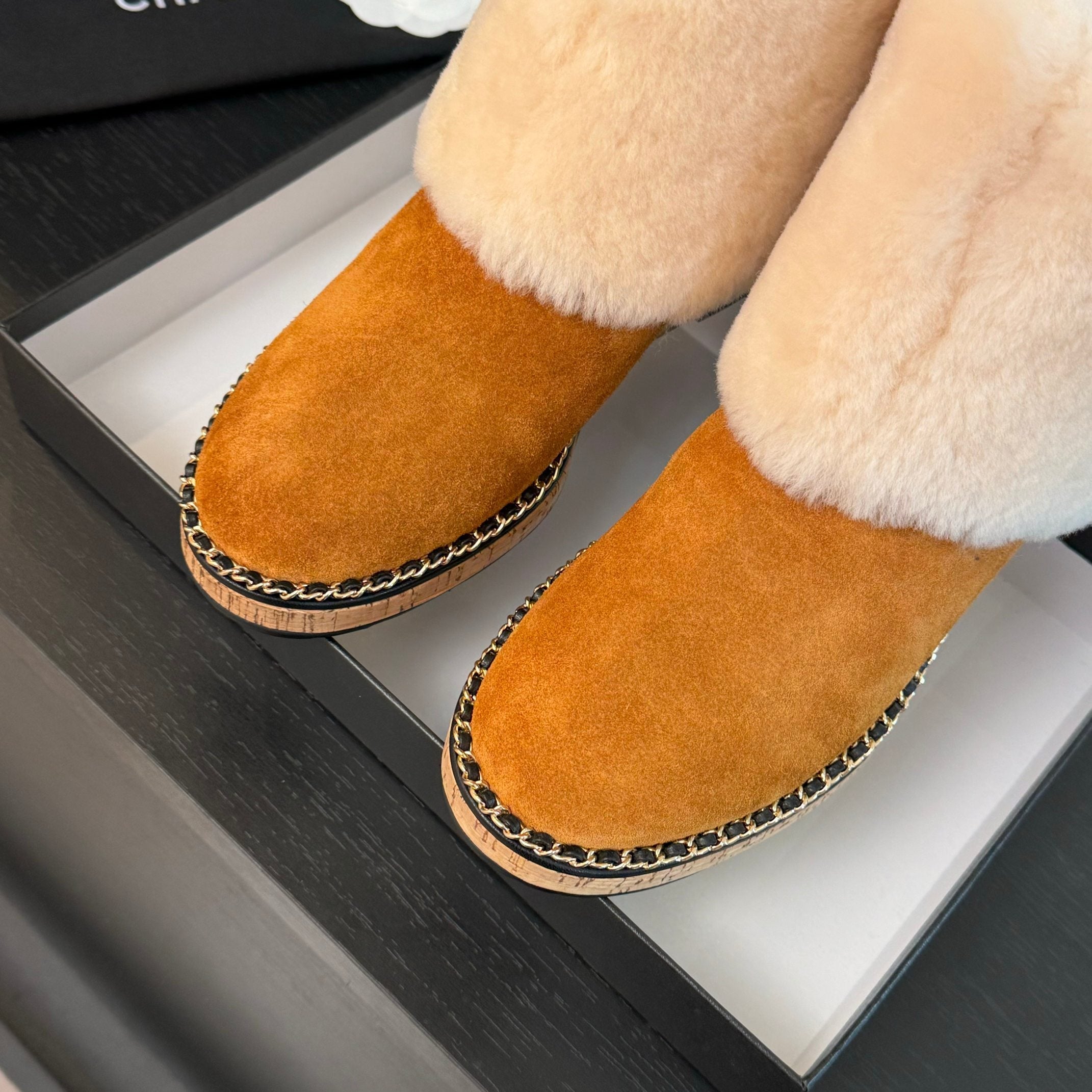 CC Flat Ankle Boots Yellow Orange Suede And Fleece