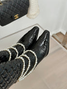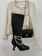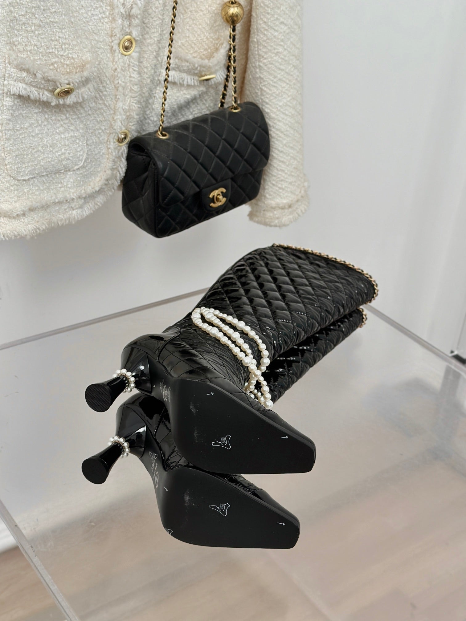 CC High Boots 80mm Glossy Black Wrinkled Quilted Calfskin