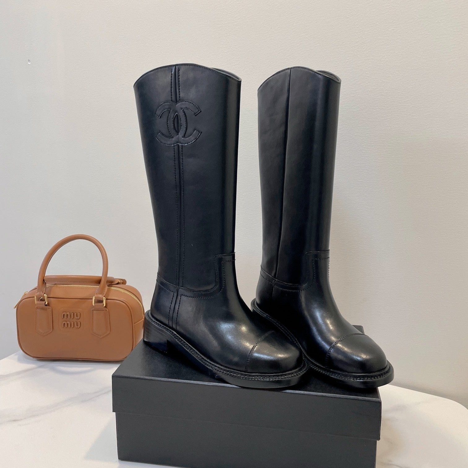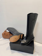CC High Boots Black Logo Print Cowhide 944734