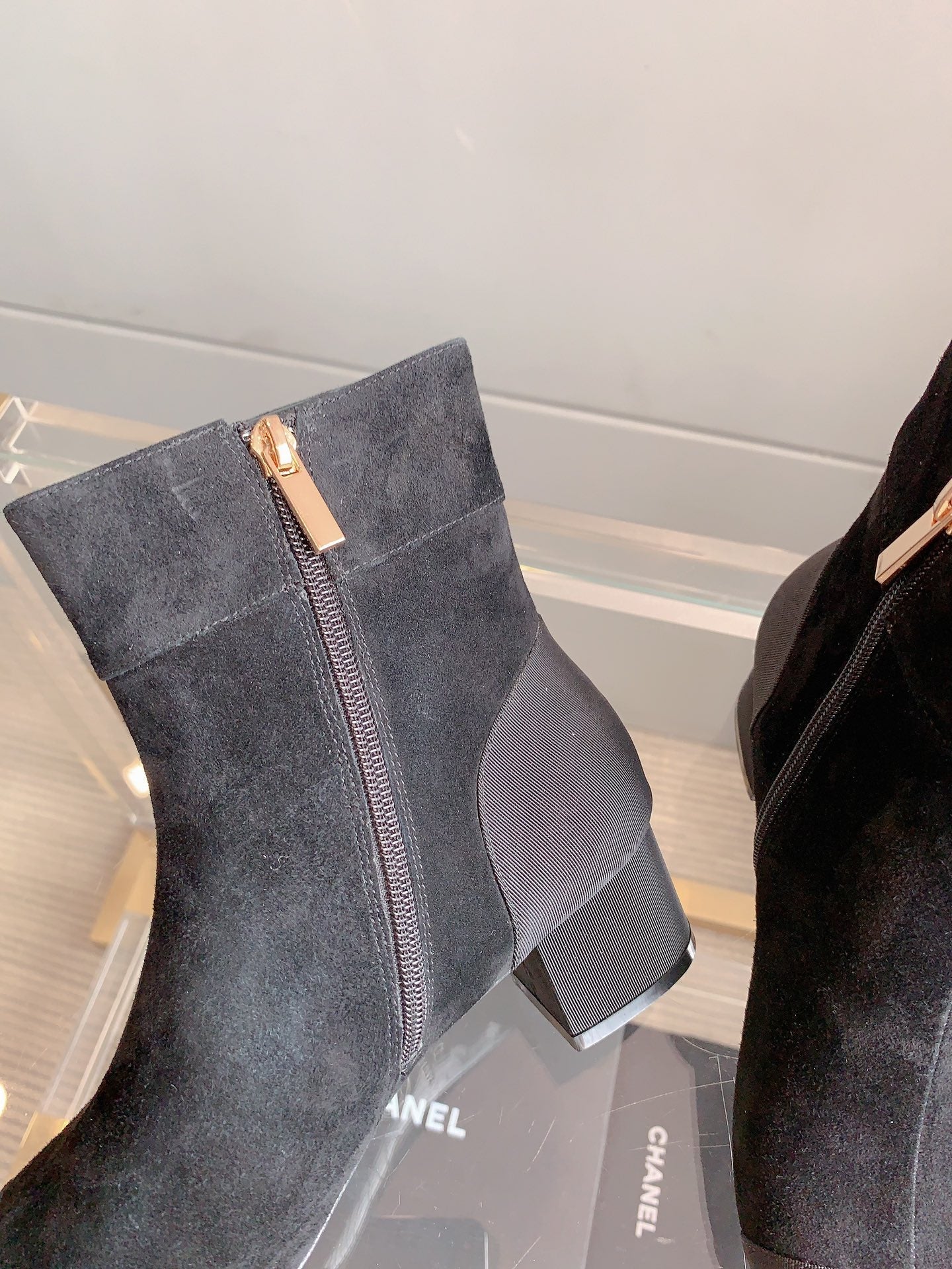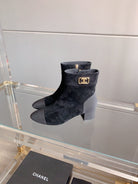 CC Low-Cut Logo Ankle Boots 50mm Black Suede Frabic 464557