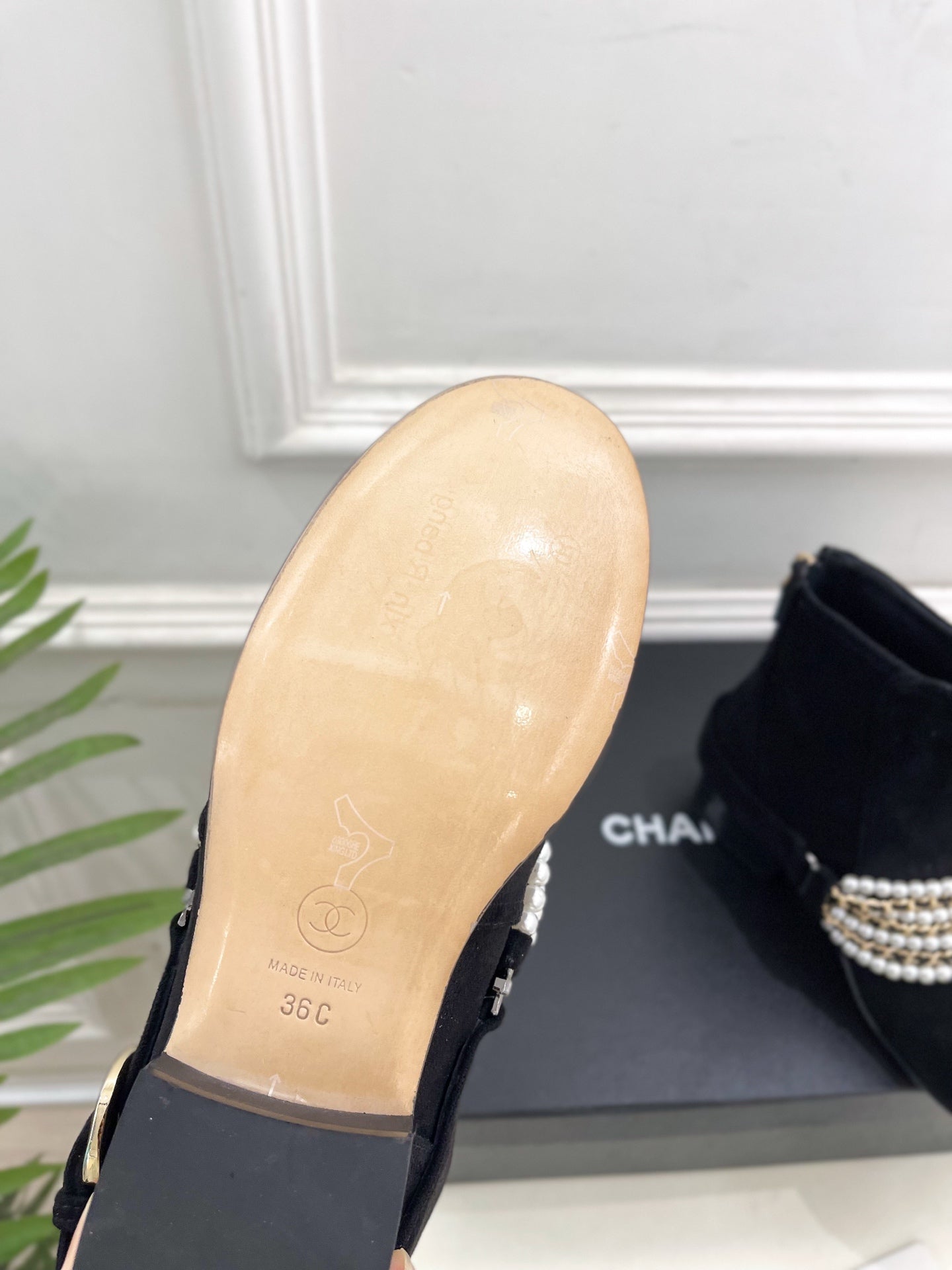 CC Pearl Chain Ankle Boots Booties 35mm Black Suede 425461