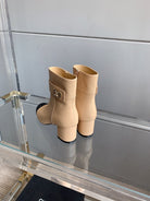 CC Square Toe Ankle Boots 70mm Beige Black Cowhide 464565