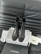 CC Ankle Boot Black Calfskin Grosgrain Leather Strap