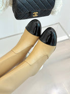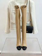 Chanel 25 Double C Giant Pearl Heel Long Boot Beige Black Sheepskin 465411