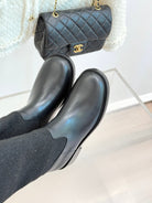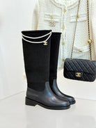 Chanel 25 Four-Leaf Clover Pearls Double C Long Boots Black Woven Sheepskin 465407