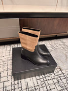 Chanel 25A Winter New Low Boots Black Beige Cowhide 393515