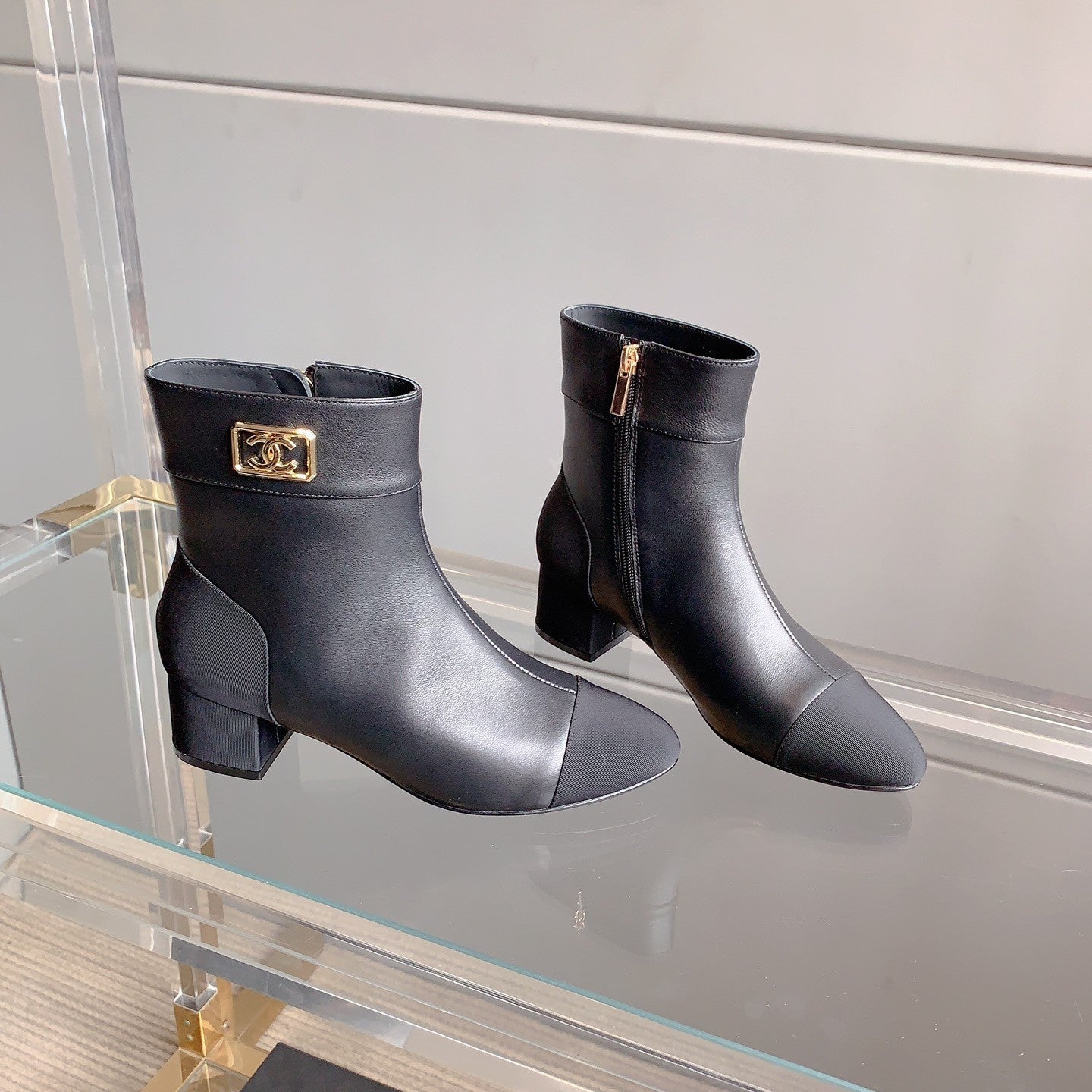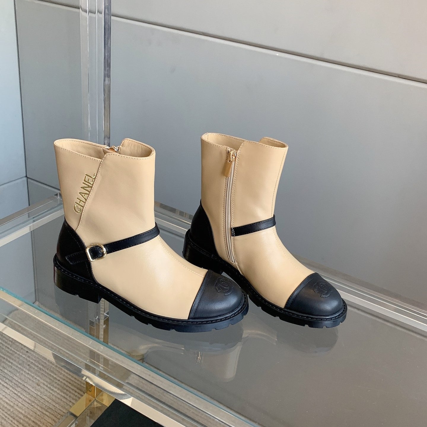 CC Cap Toe Ankle Boots Black Beige Cowhide 464571