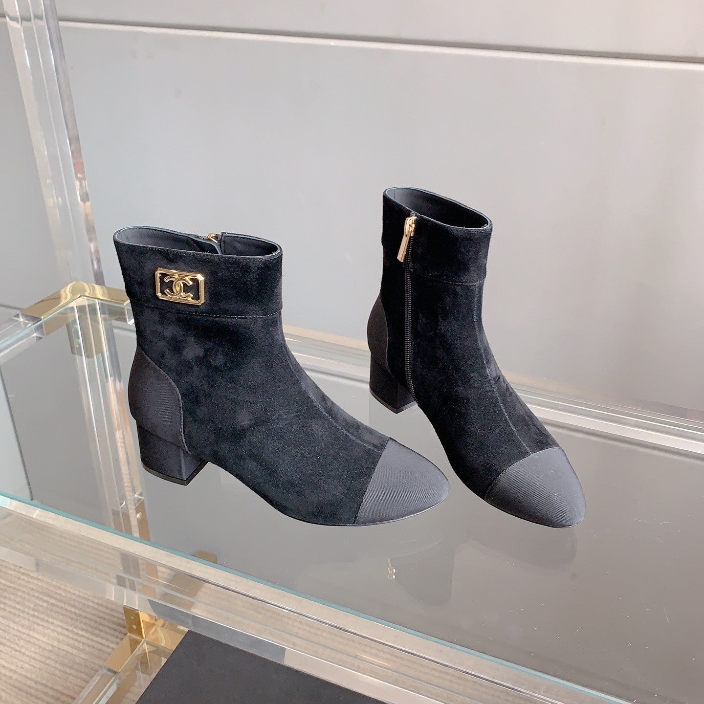 CC Low-Cut Logo Ankle Boots 50mm Black Suede Frabic 464557