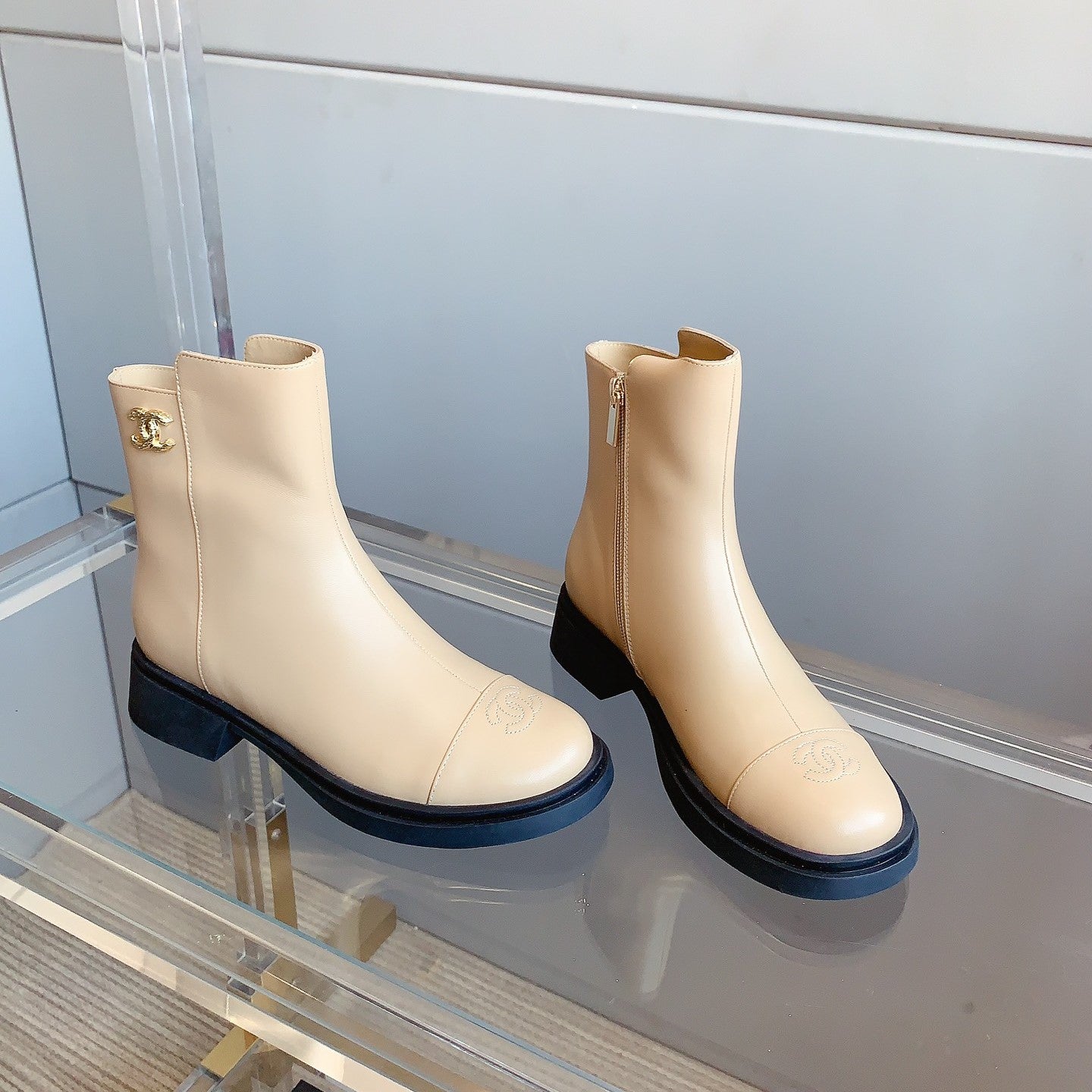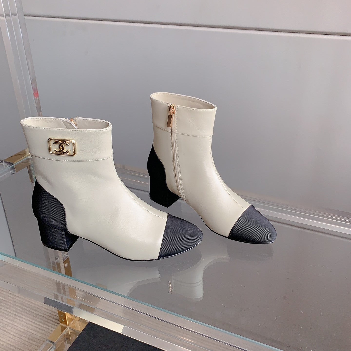 CC Ankle Boots Block Heel 60mm Beige Black Cowhide 464568