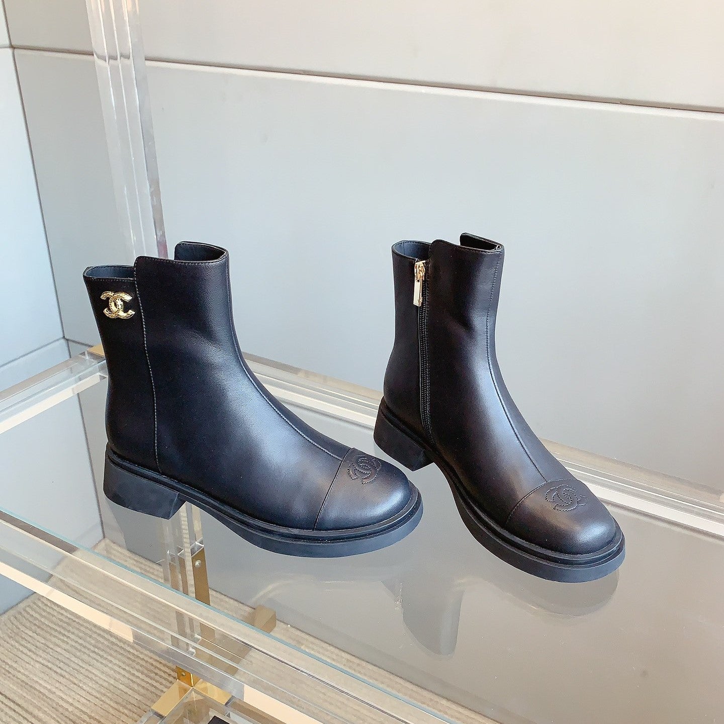 Chanel 25 Large Chain Flat-solved Boot Black Lambskin 465422