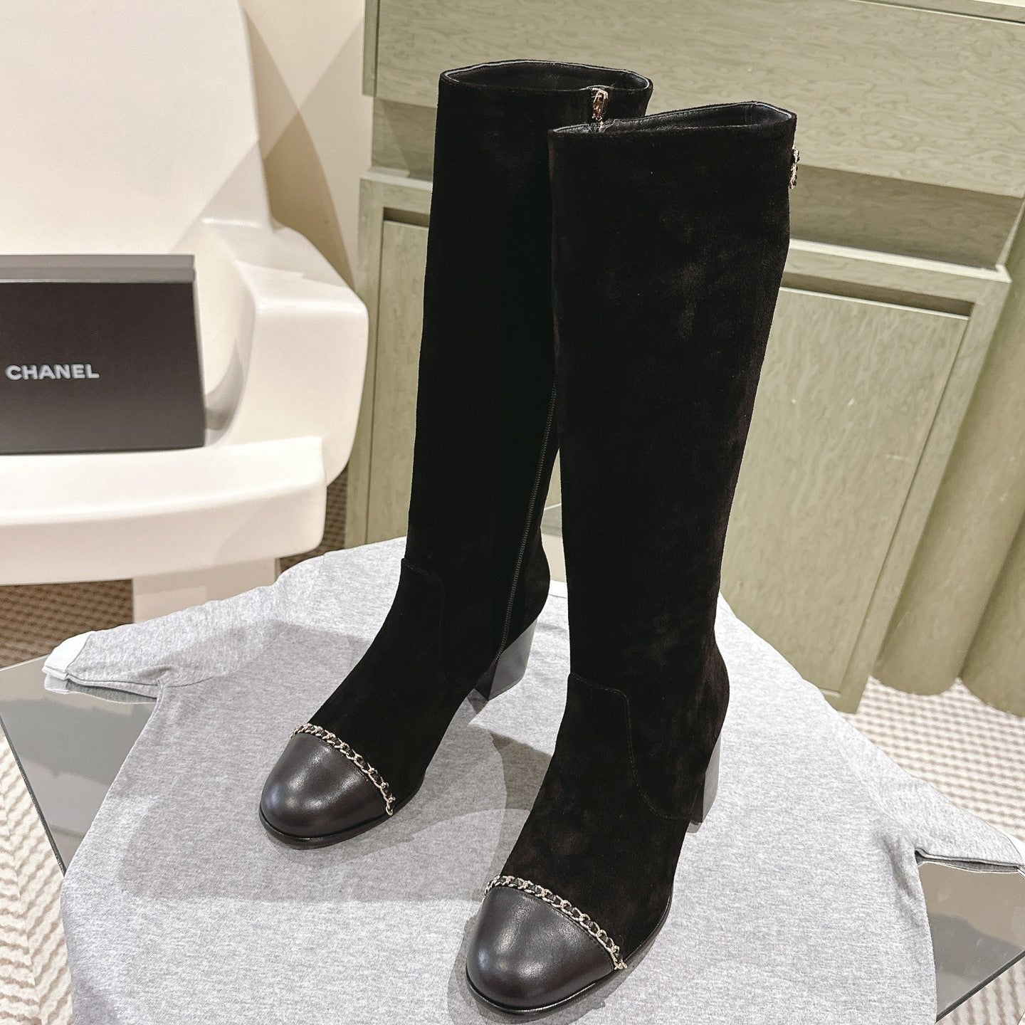 CC 24 FW Knee-High Boots with Chain 70mm Black Suede 447183