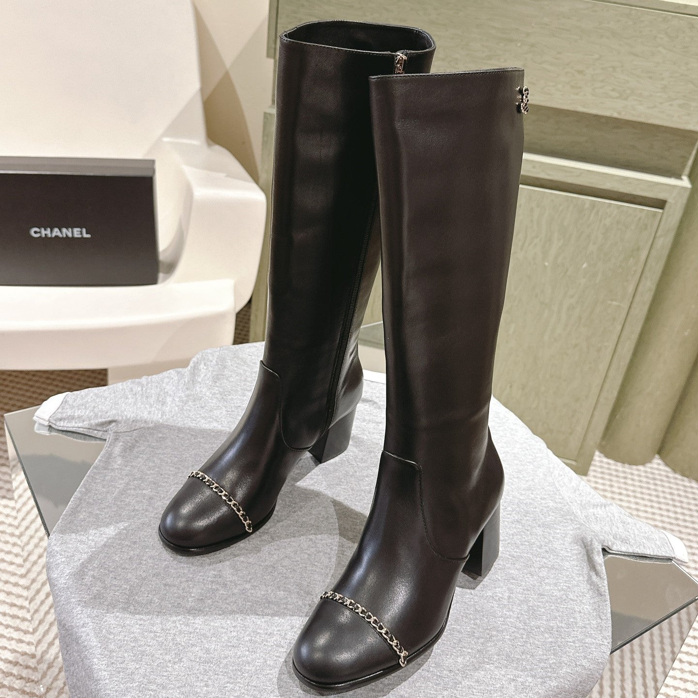 CC 24 FW Knee-High Boots with Chain 70mm Black Cowhide 447186