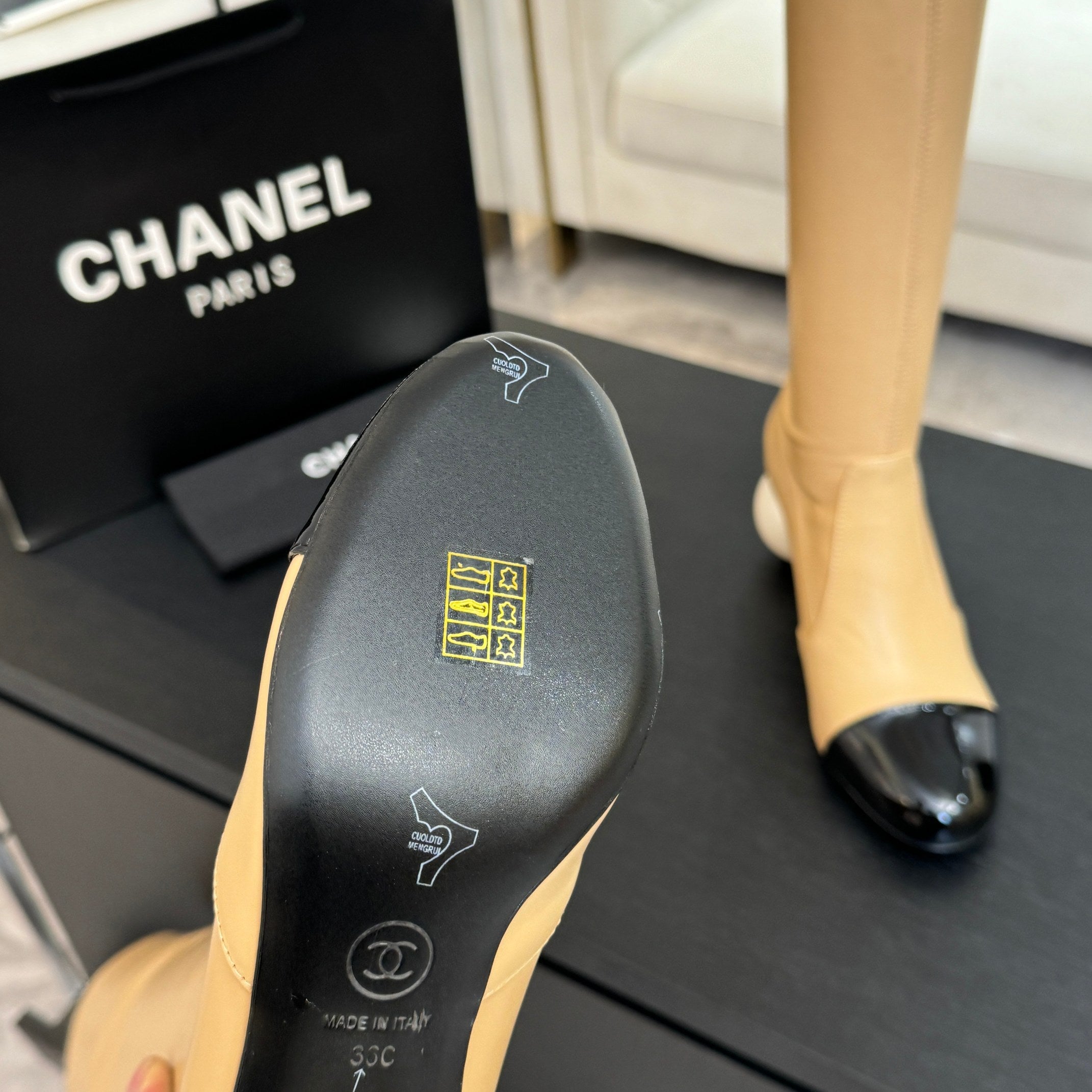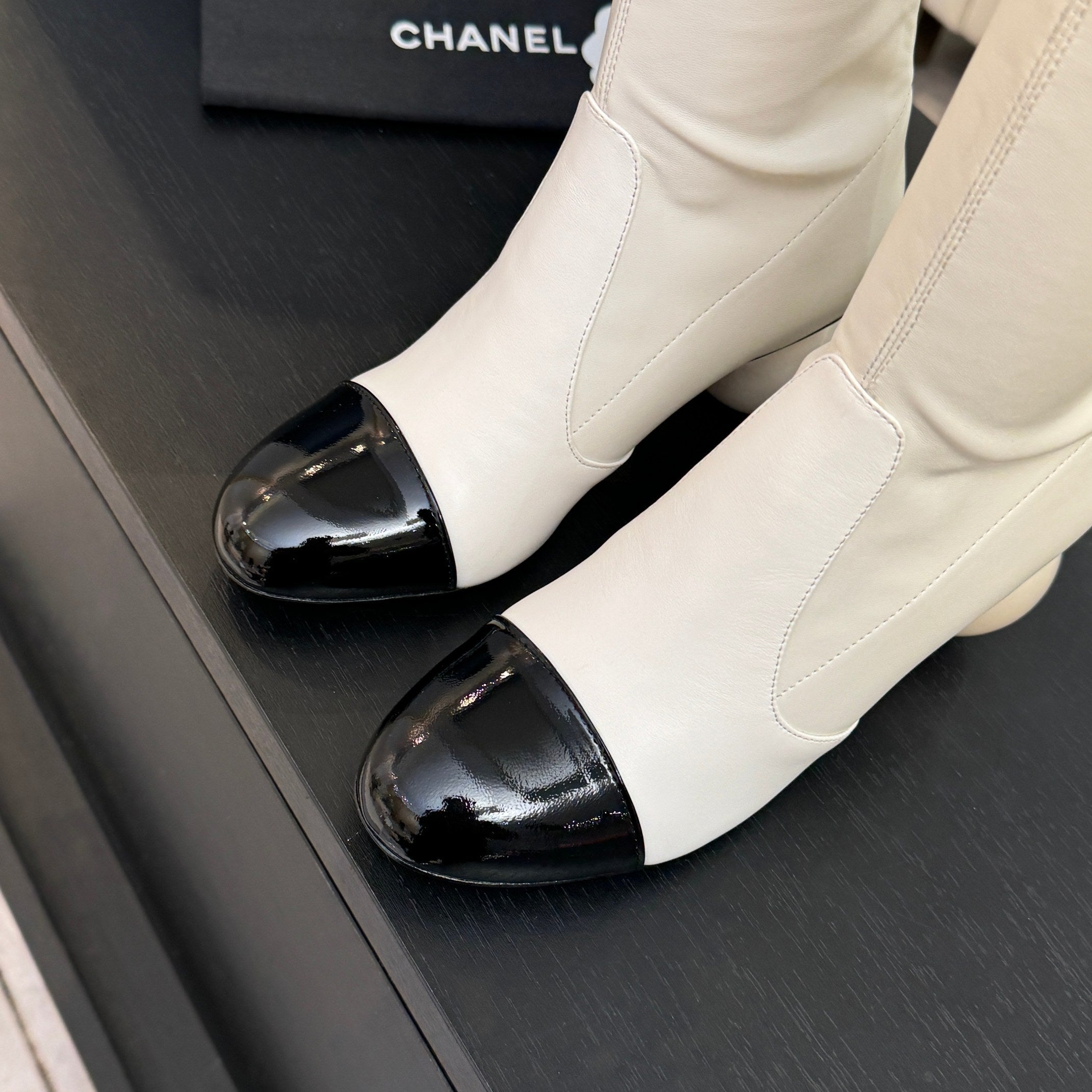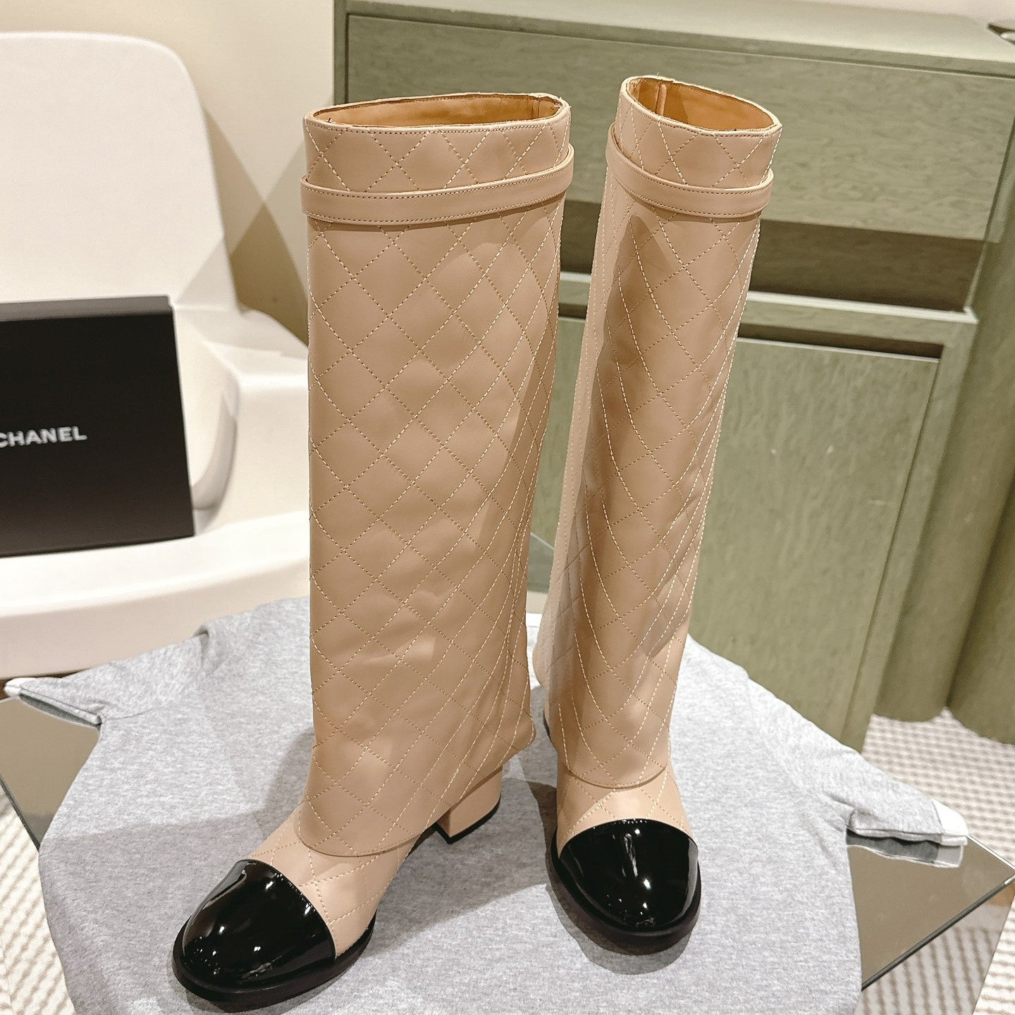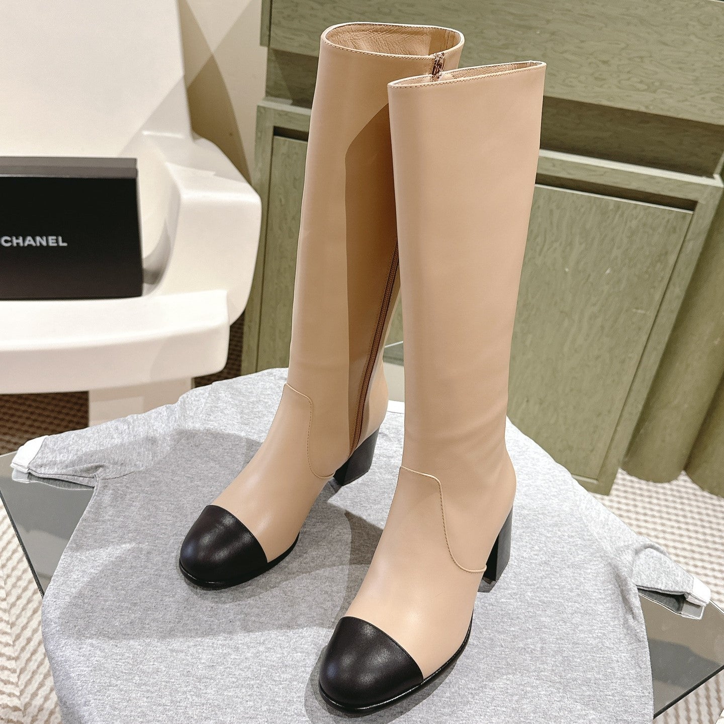 CC 24 FW Knee-High Boots 70mm Beige Black Cowhide 447188