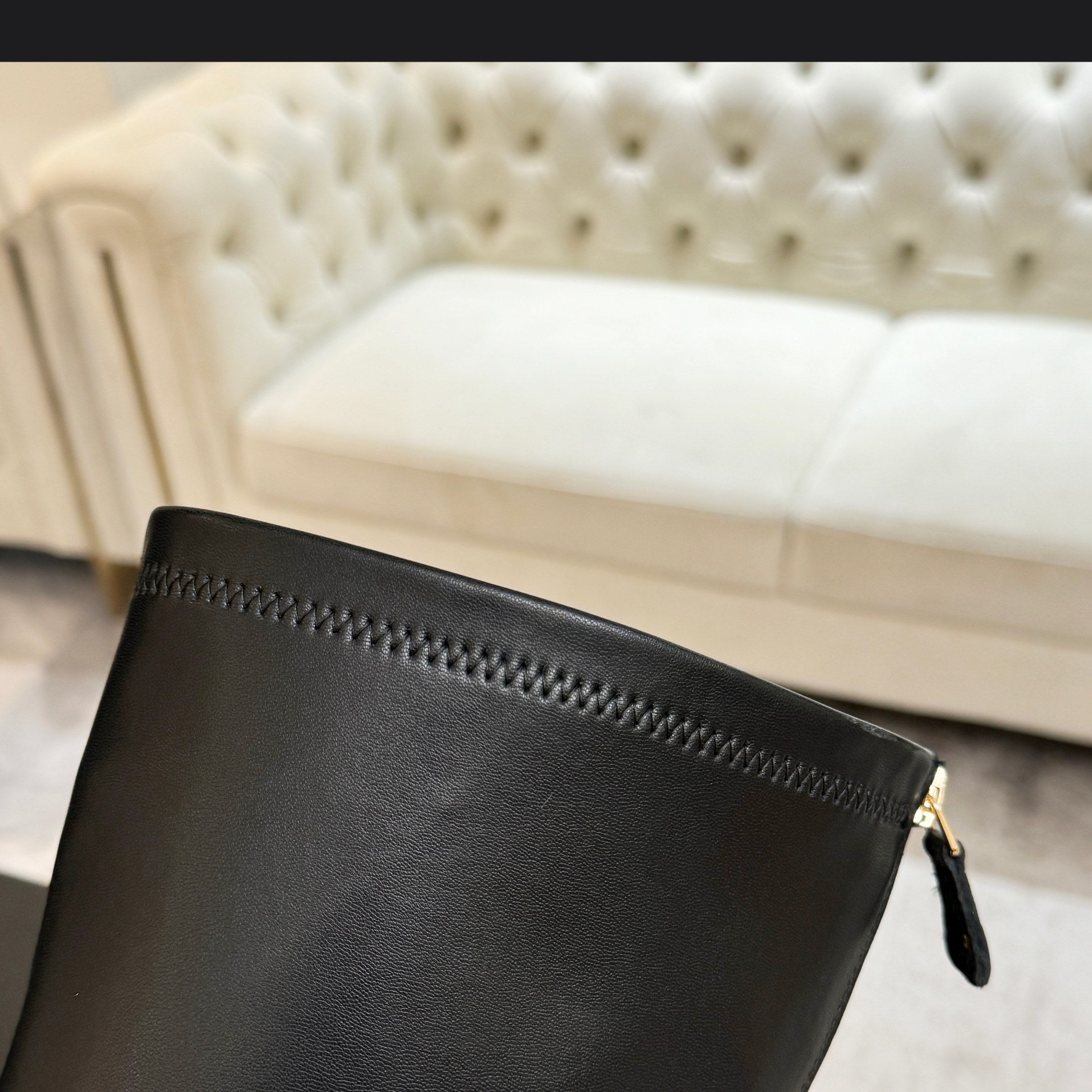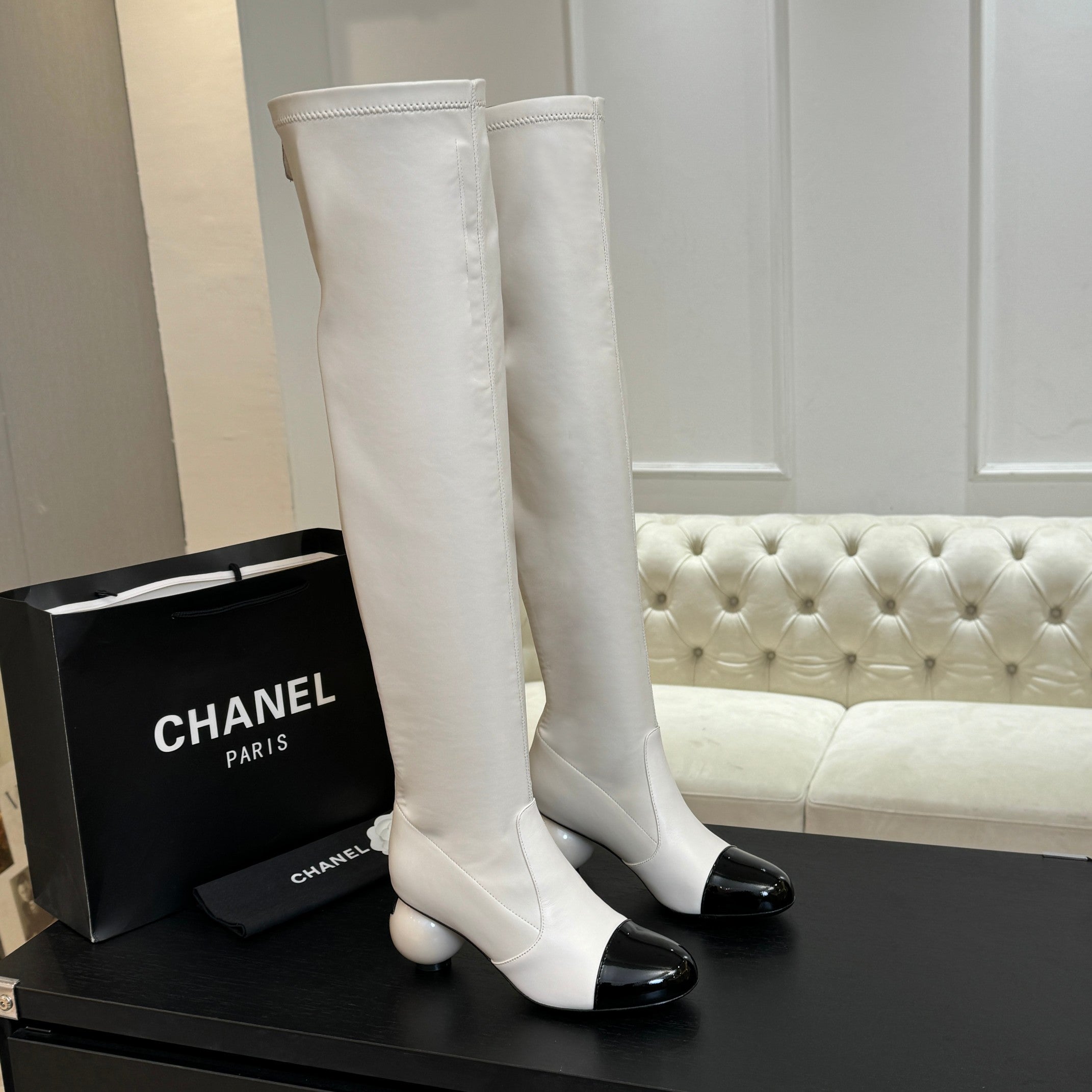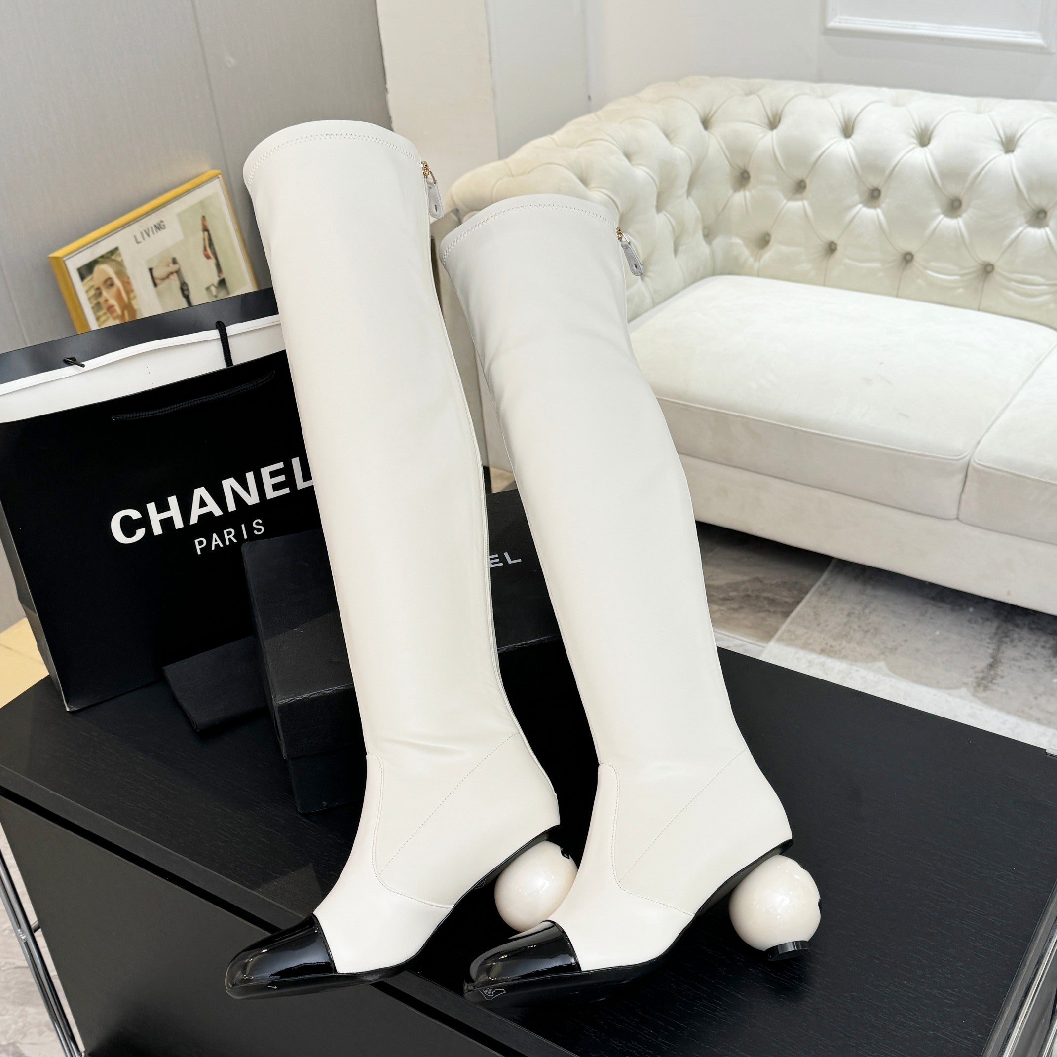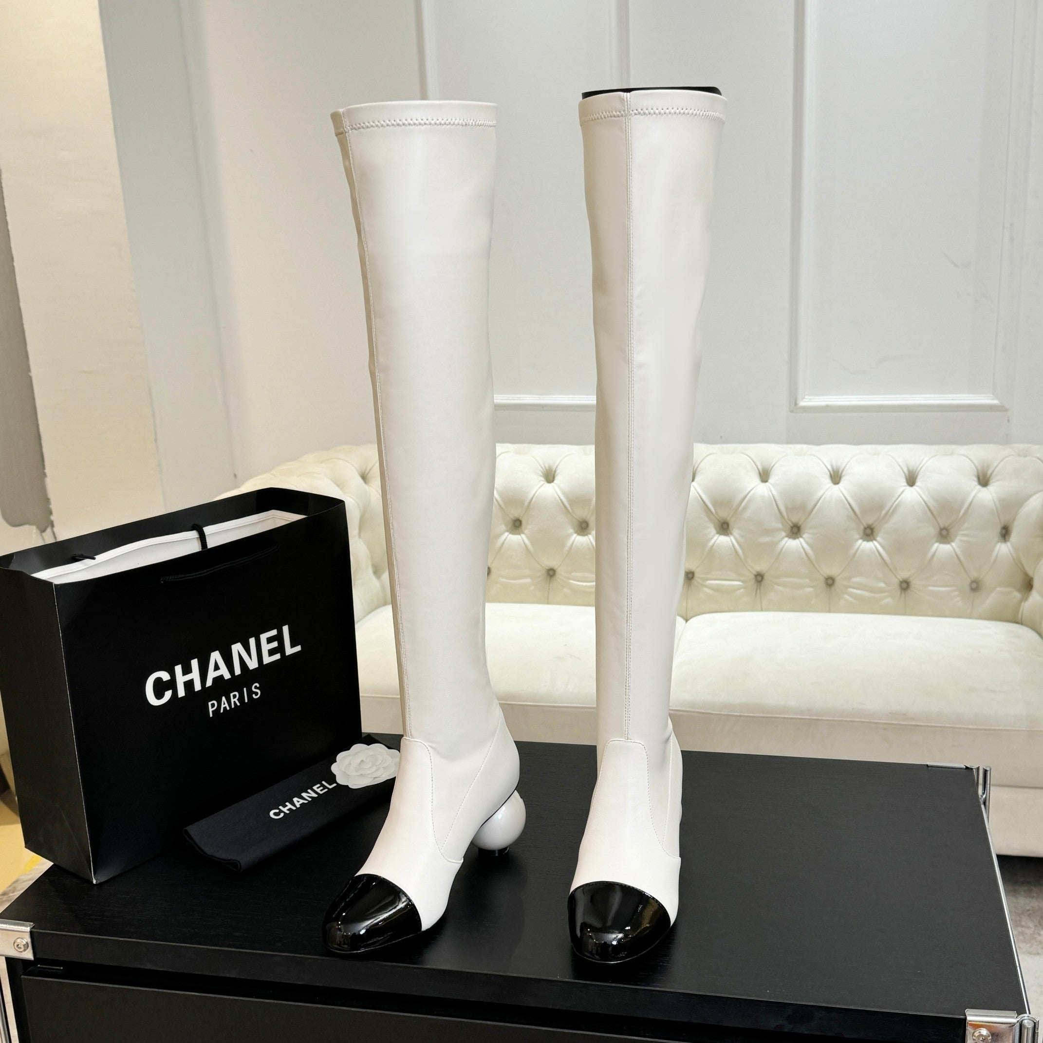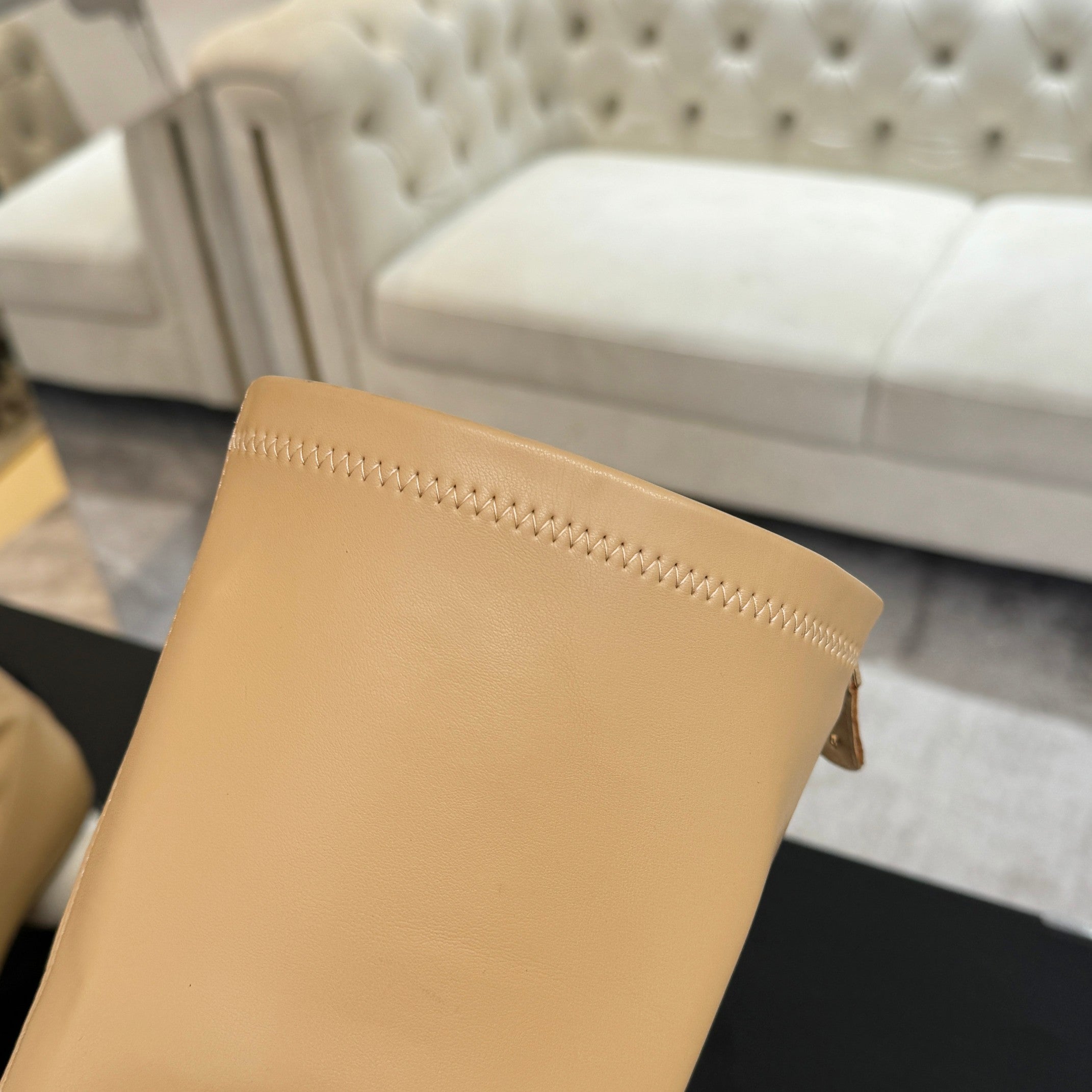 CC 24 FW Knee-High Boots 70mm Beige Black Cowhide 447188