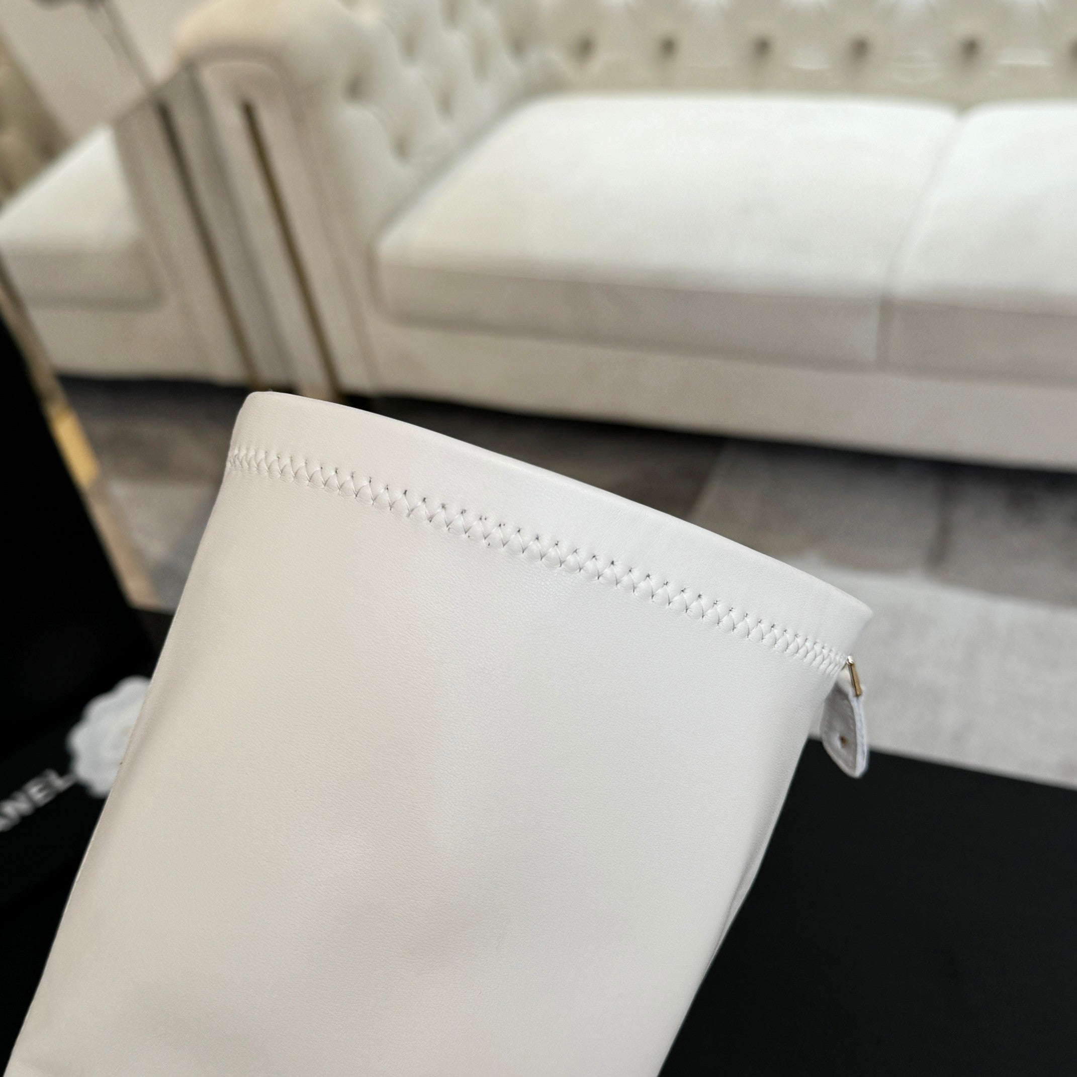 CC 24 FW Knee-High Boots with Chain 70mm White Black Cowhide 447184