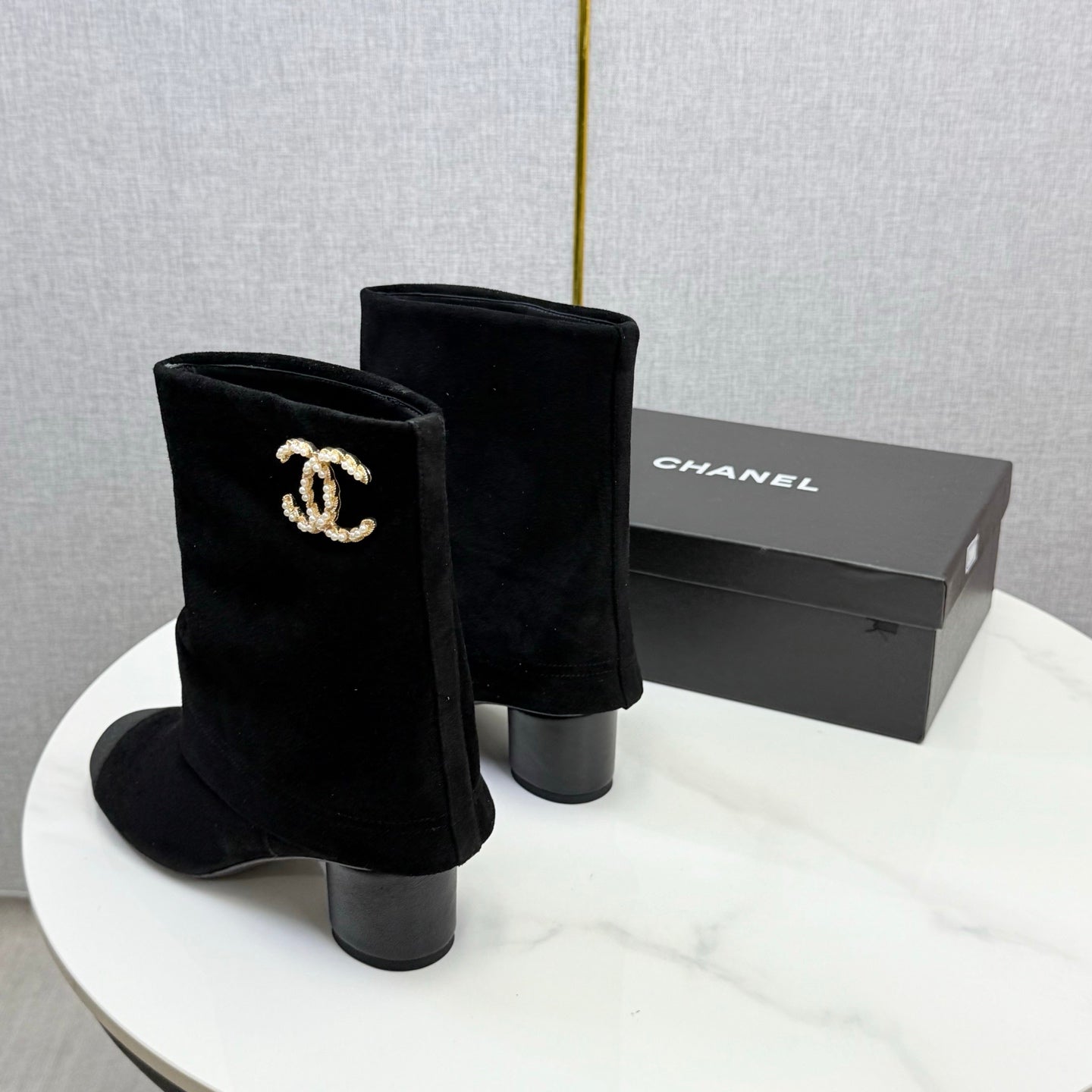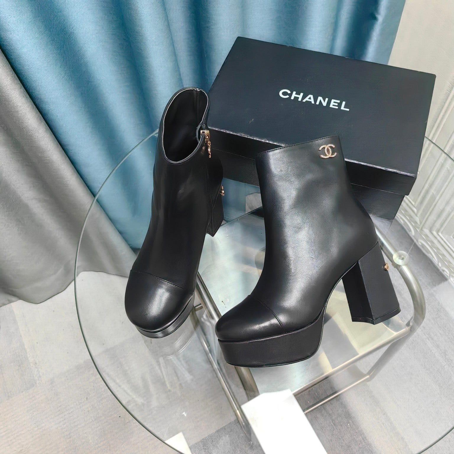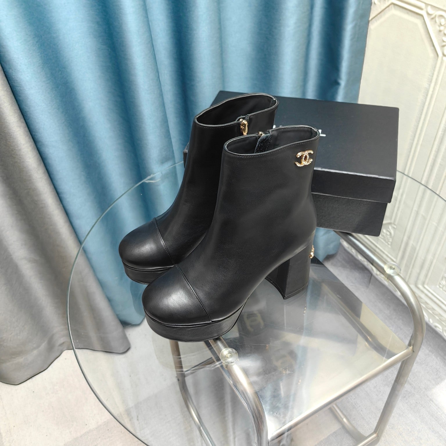 CC 25A Double C Giant Pearl Heel Boots 50mm Black Cowhide 454946