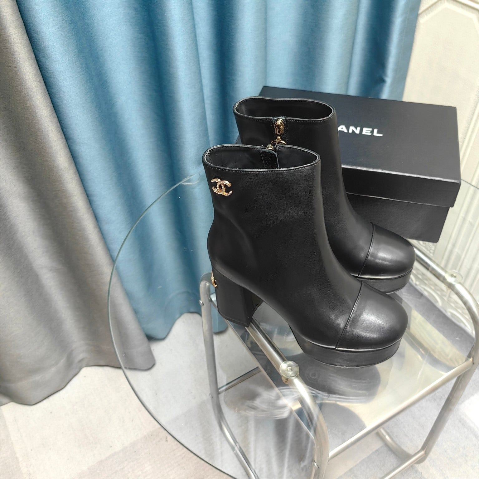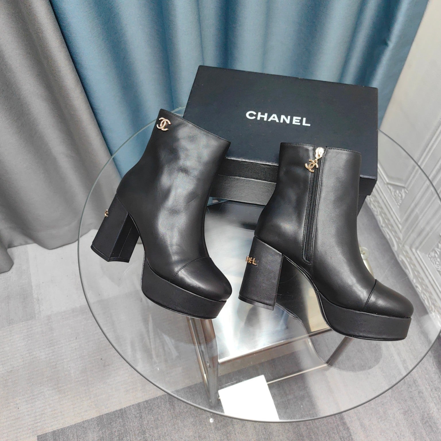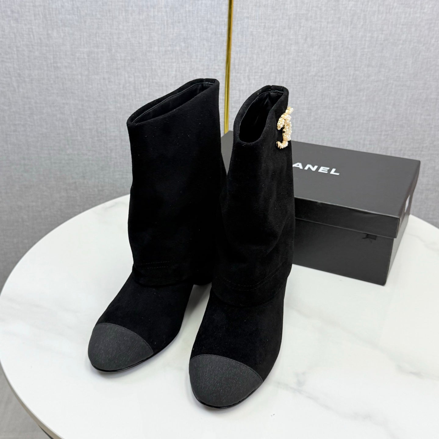 CC 25A Double C Giant Pearl Heel Boots 50mm Black Cowhide 454946