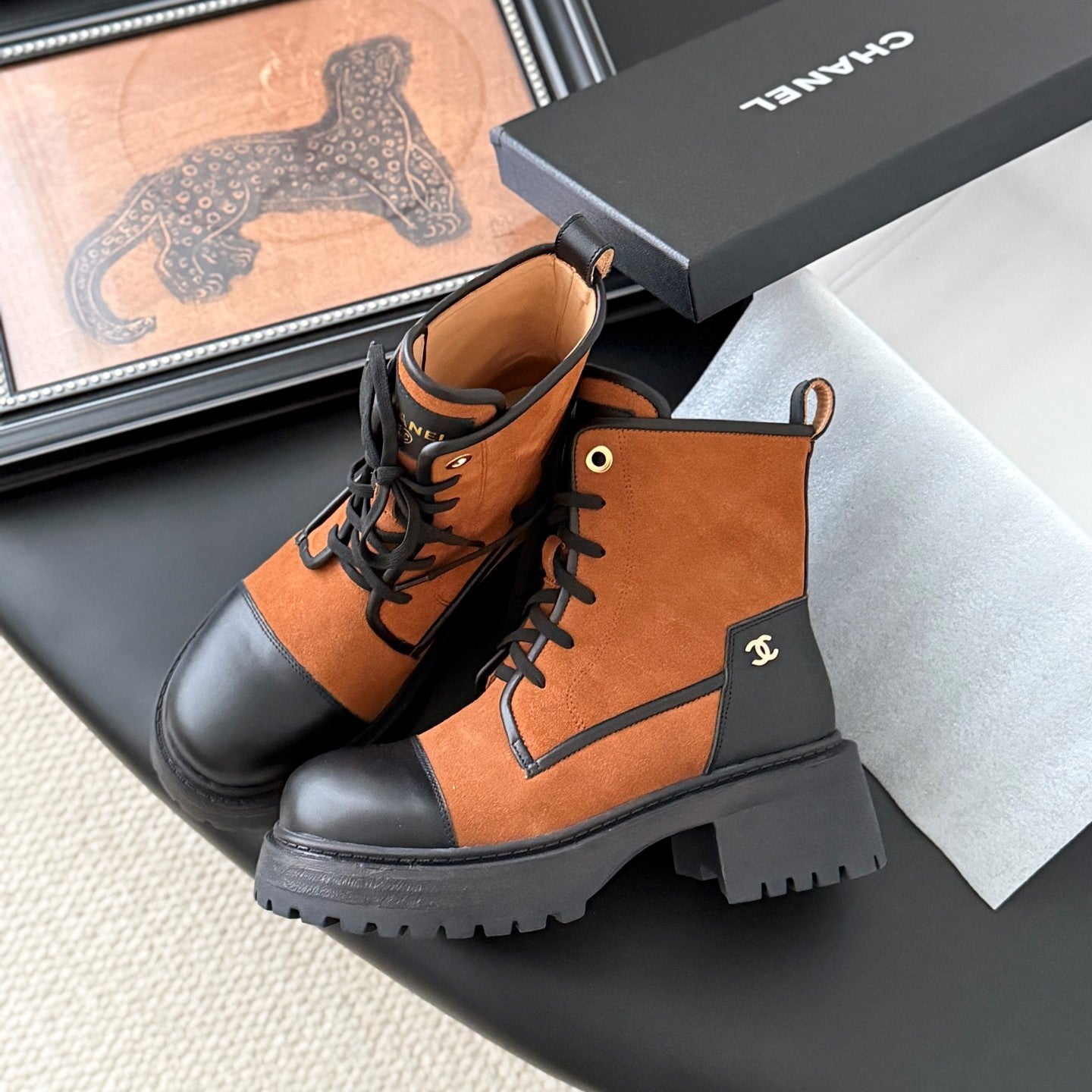 CC 25B Atelier Flats Boots Shoes Black Light Brown Sheepskin & Suede 458765