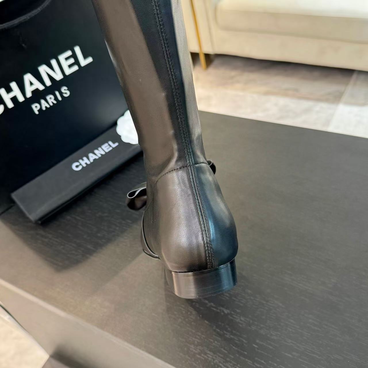 CC 25B High Boots Black Sheepskin With Chain Black Grosgrain 373810
