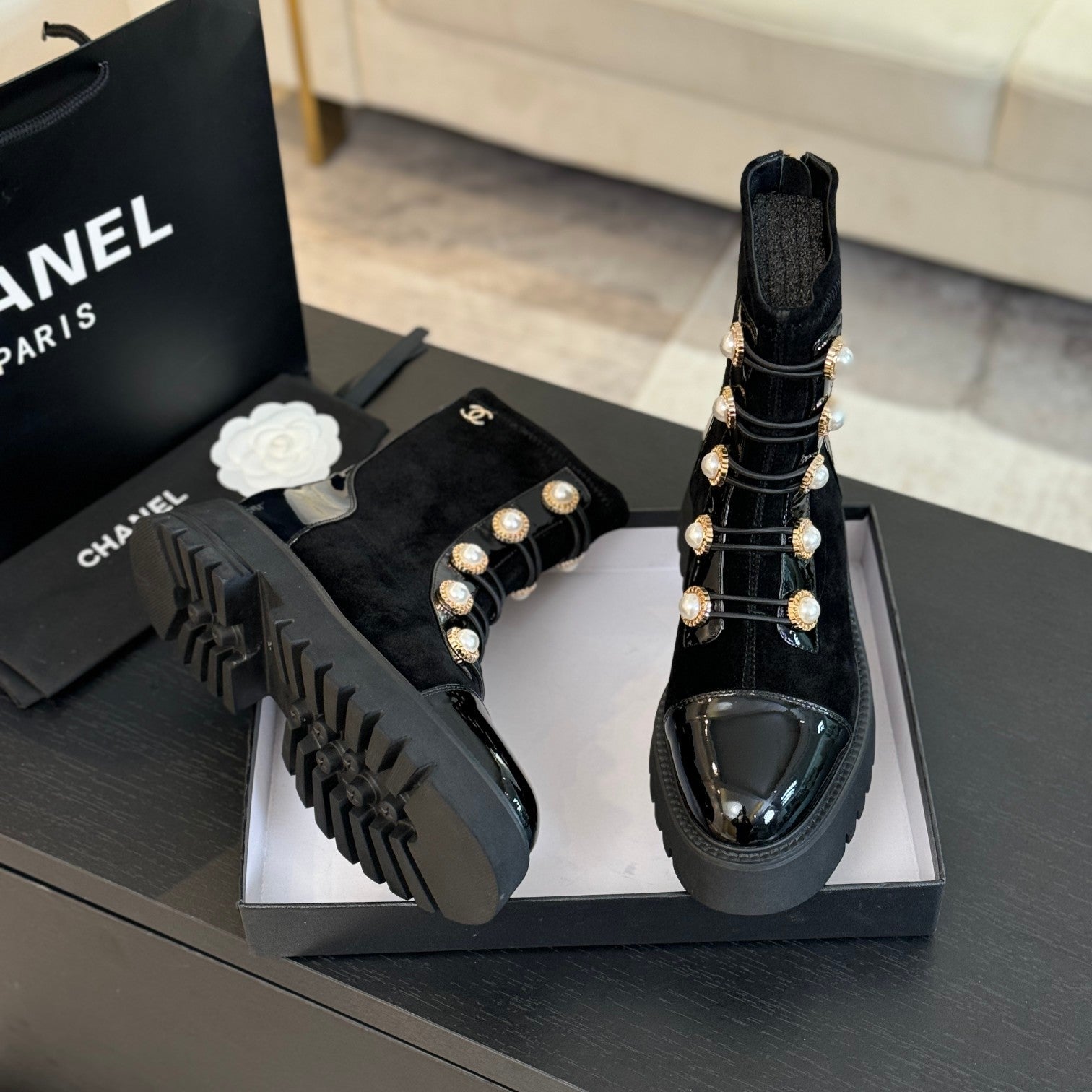 CC HIGH-TOP BOOTS IN BLACK SUEDE AND CALFSKIN WITH PEARL CHAIN