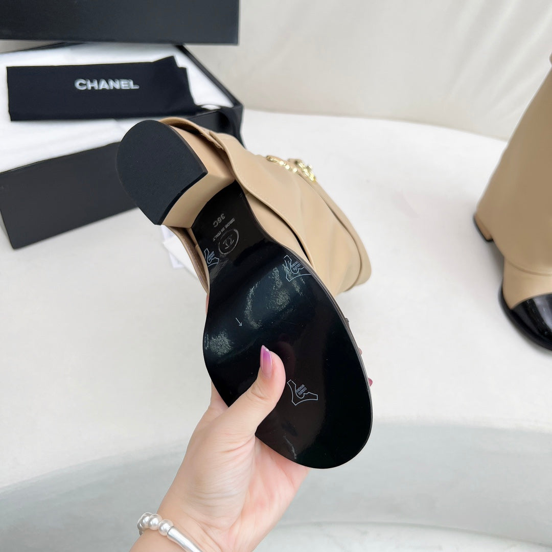 CC 25B High Boots Beige Sheepskin With Chain Black Grosgrain 373809