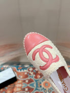 cc espadrilles beige fleece fabric pink calfskin