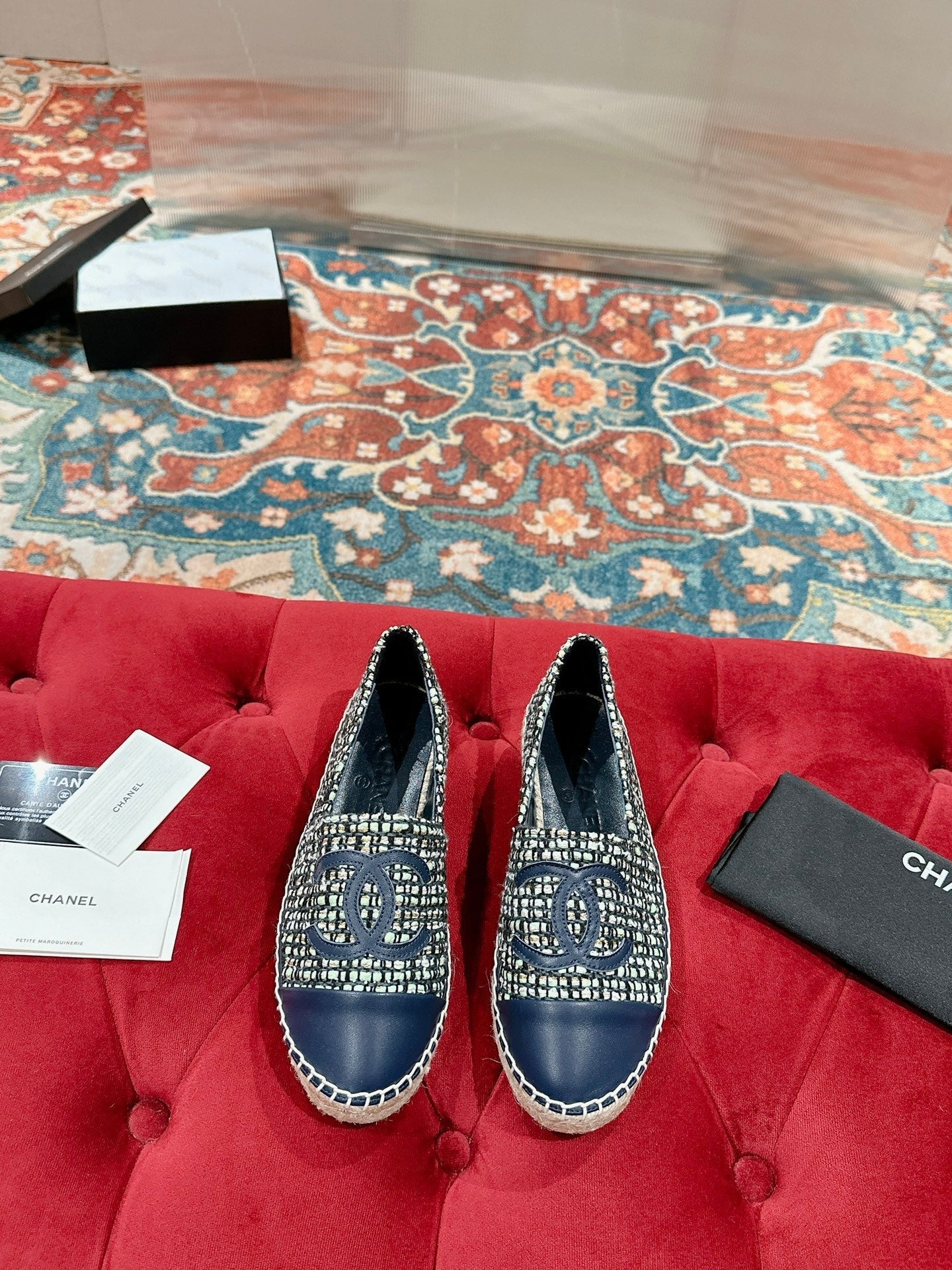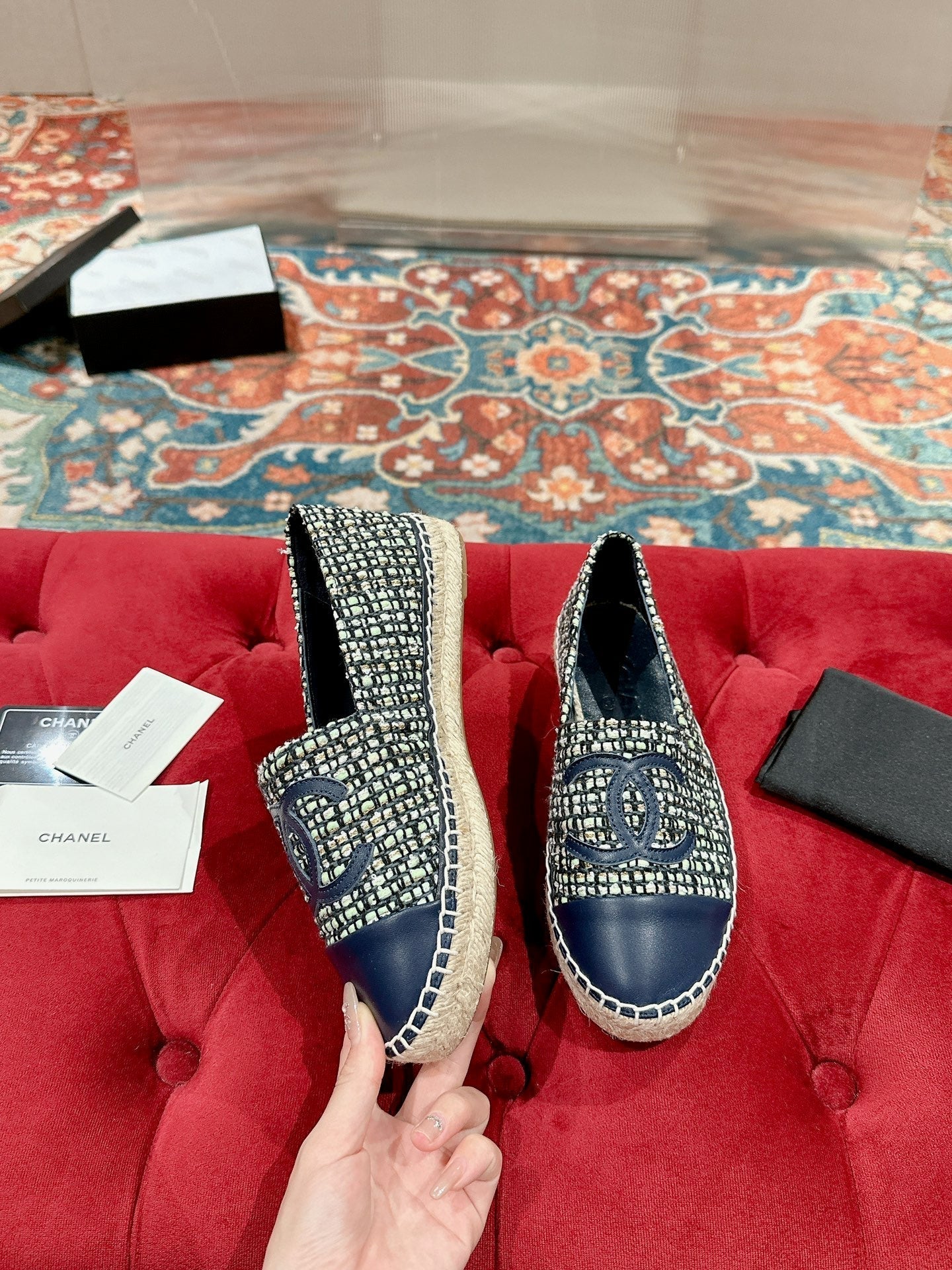 cc espadrilles dark blue blended fabric calfskin