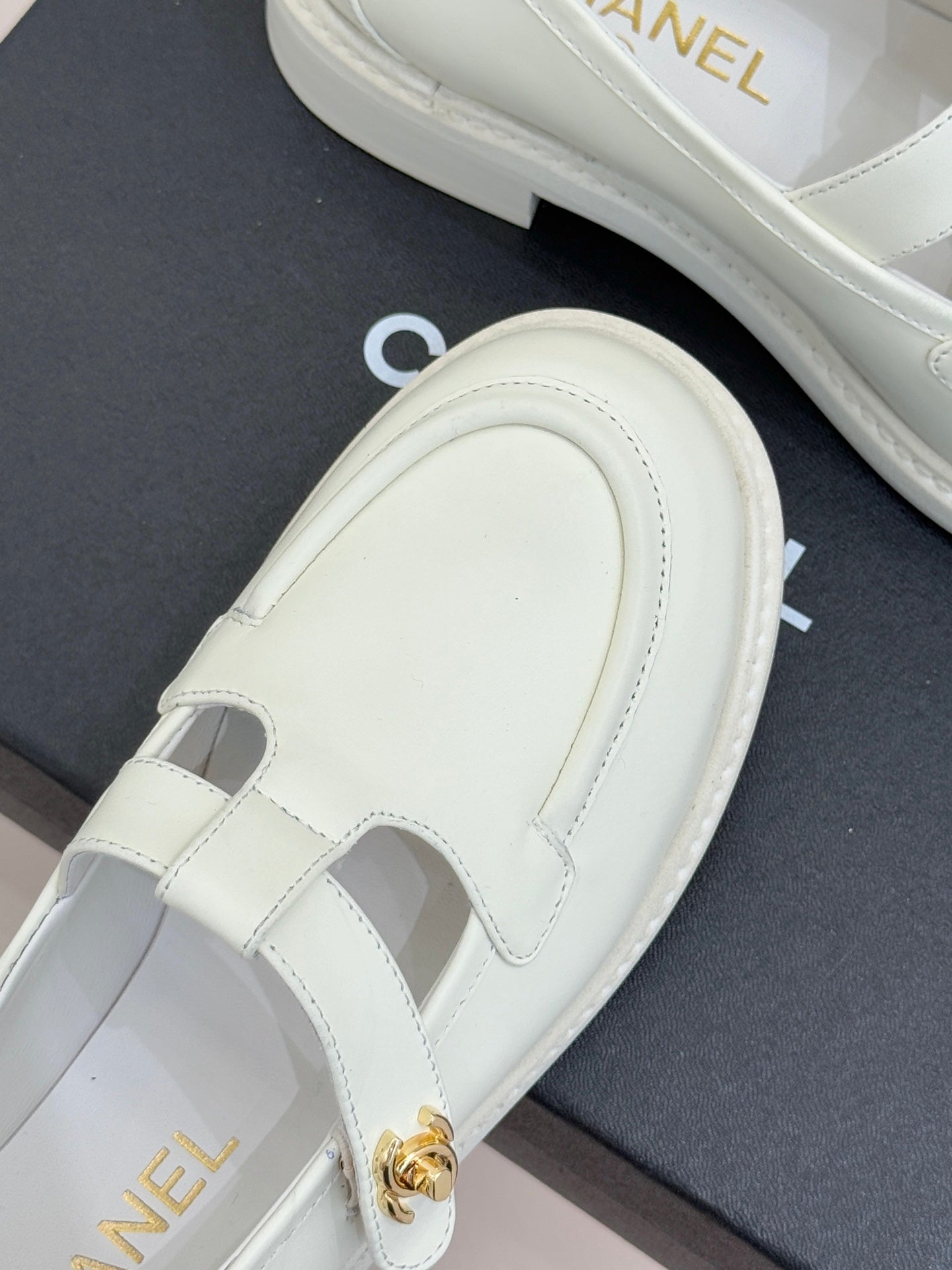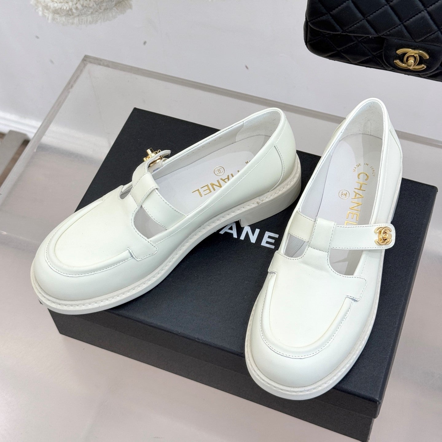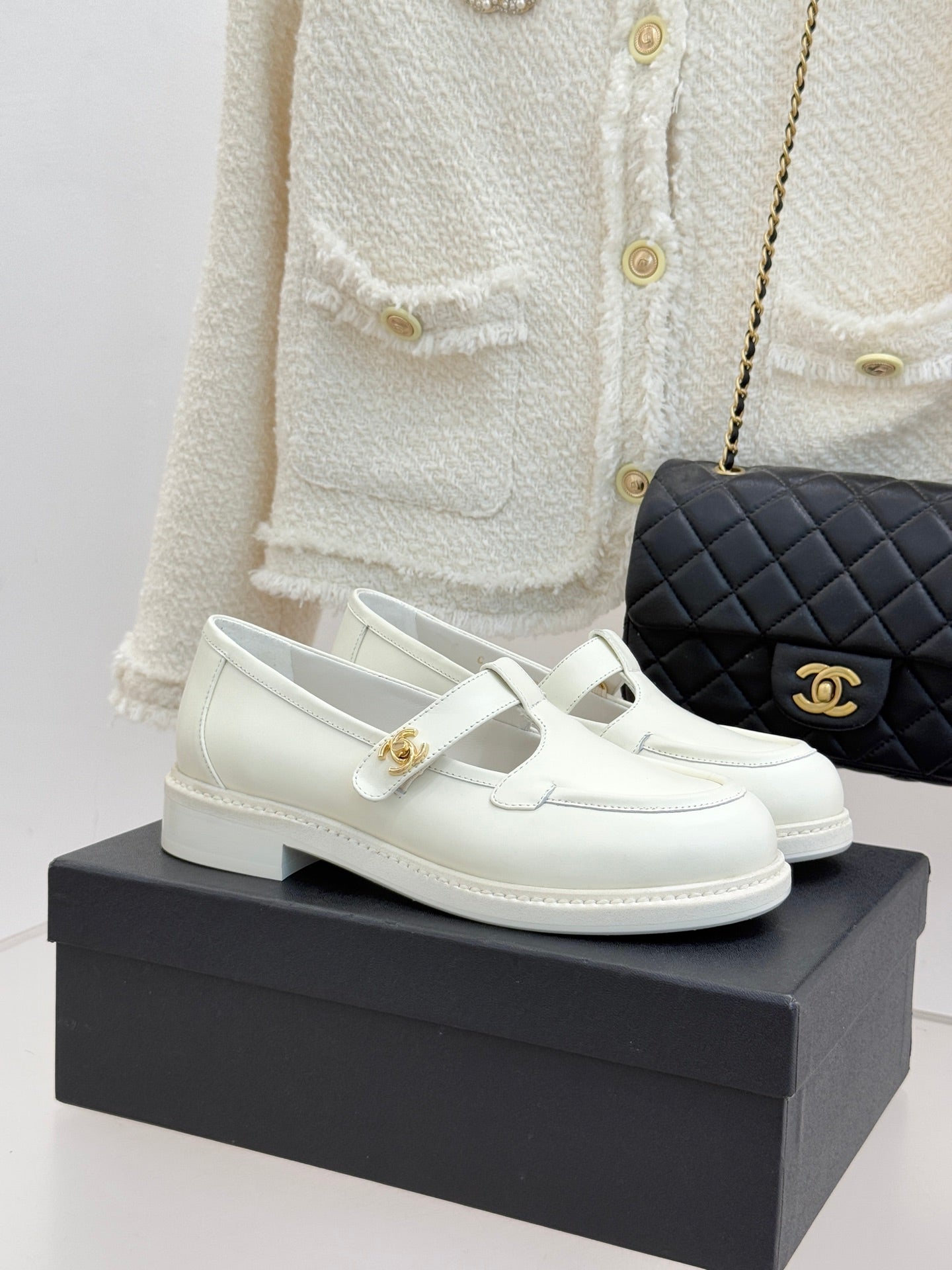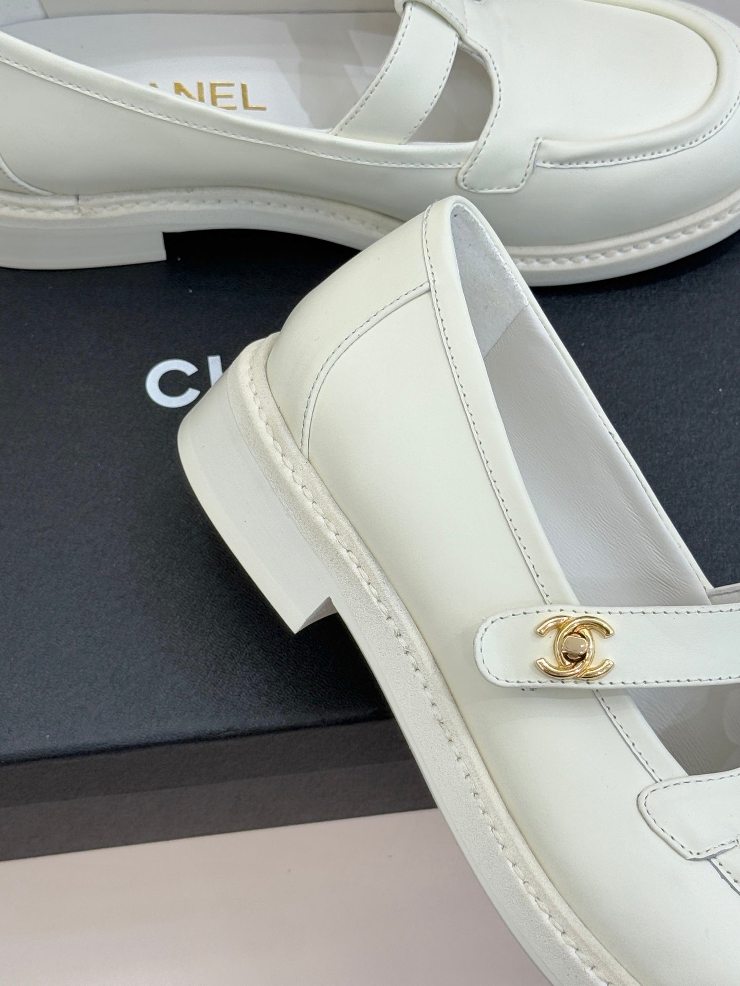 CCMary Jane Loafers CC Logo Buckle White Cowhide 512058