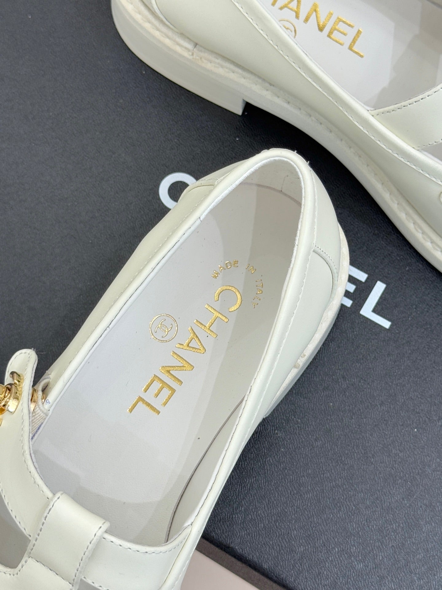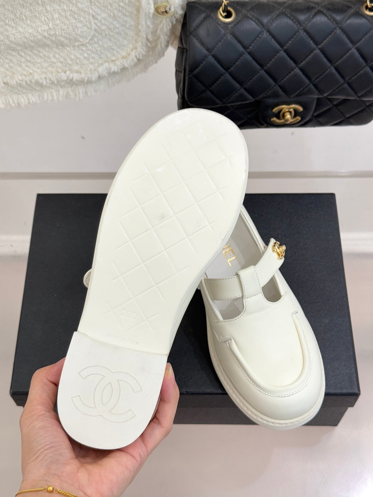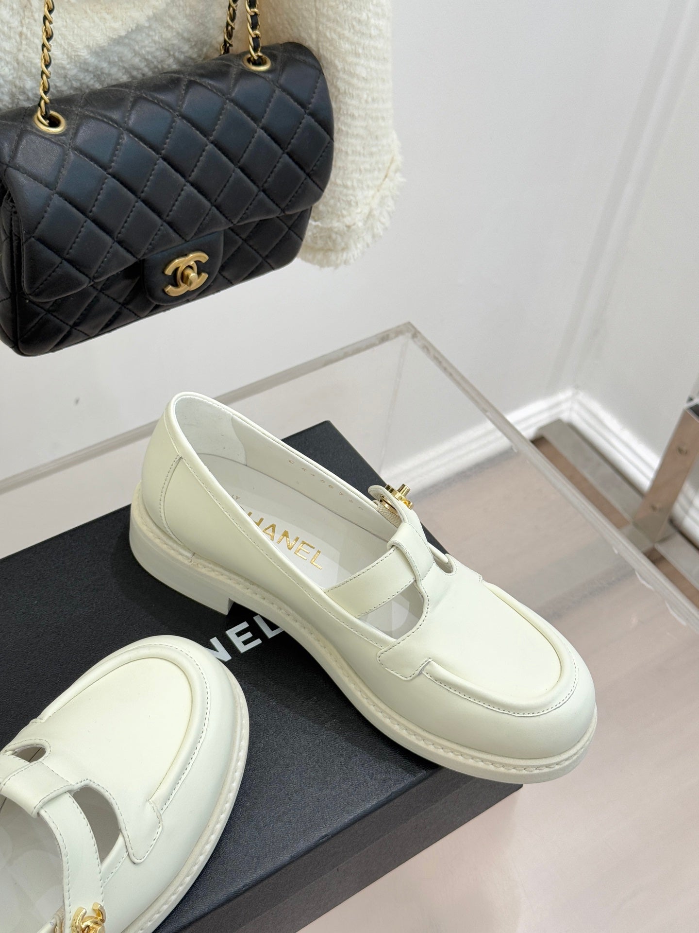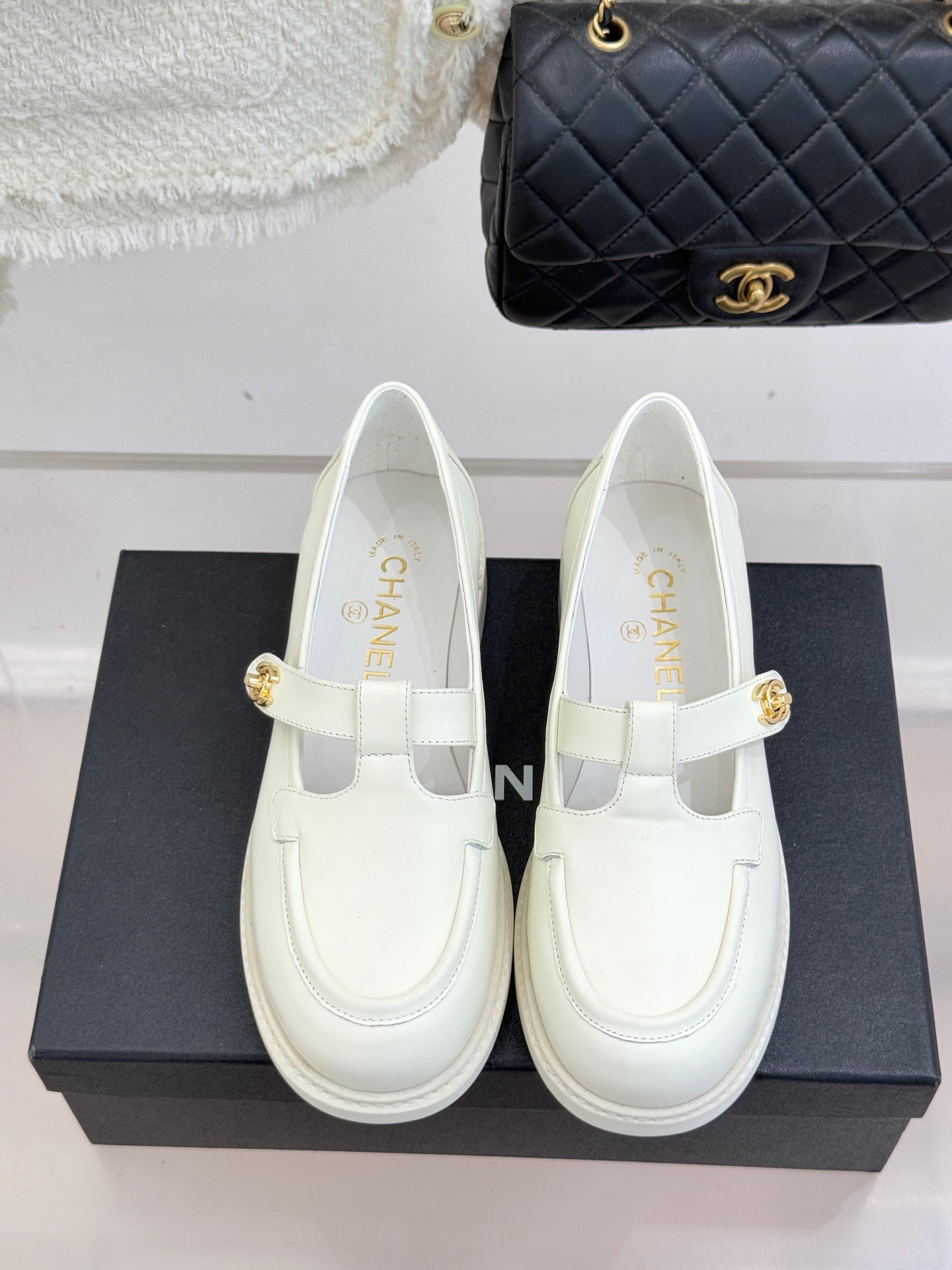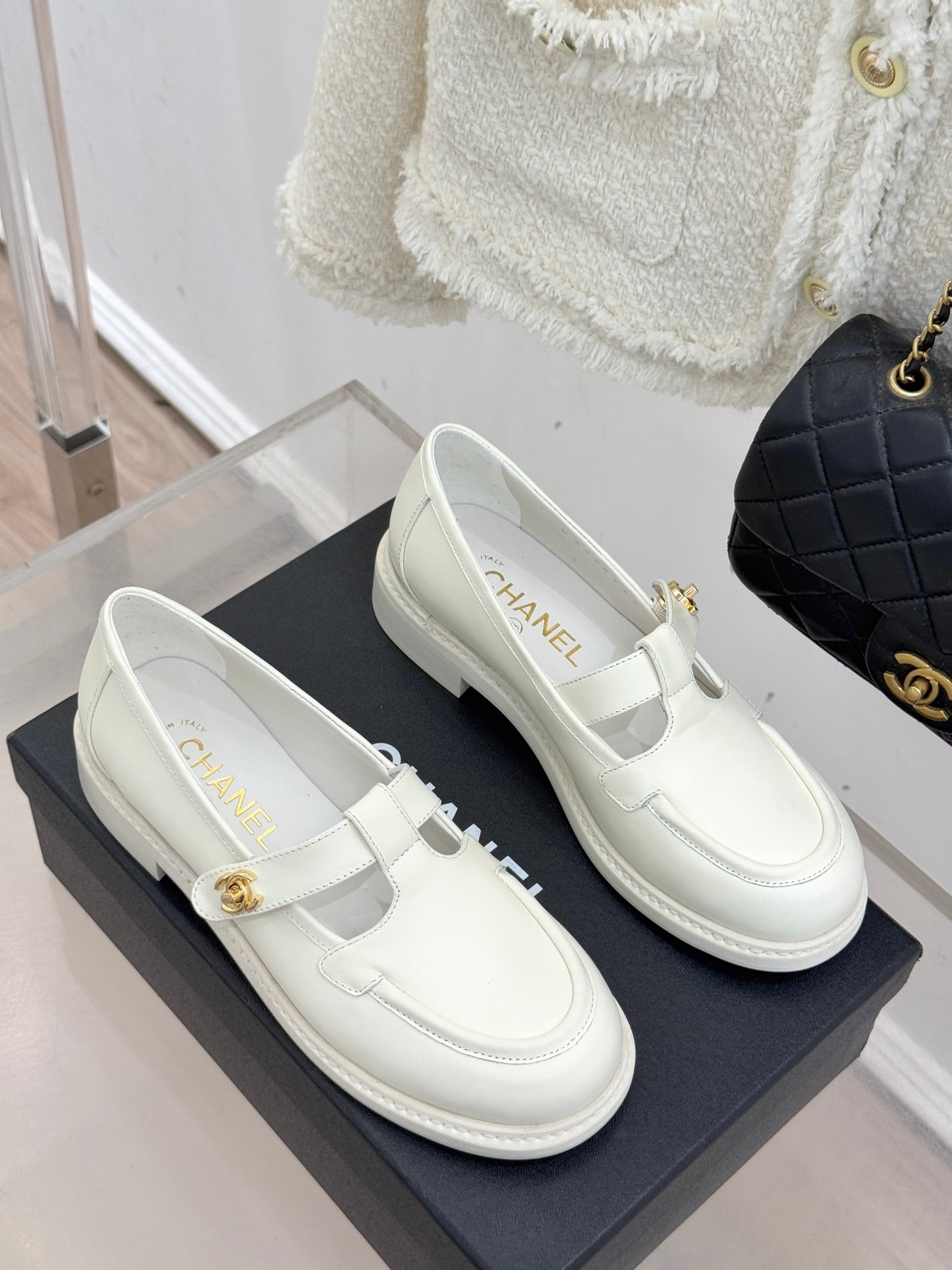 CCMary Jane Loafers CC Logo Buckle White Cowhide 512058